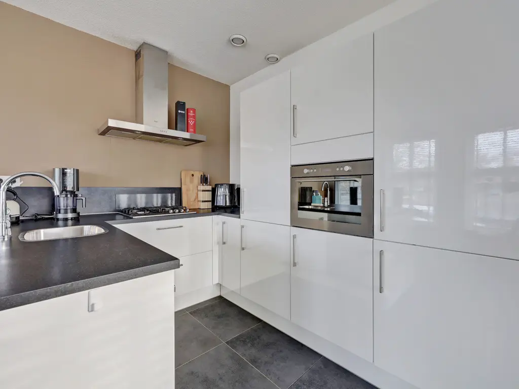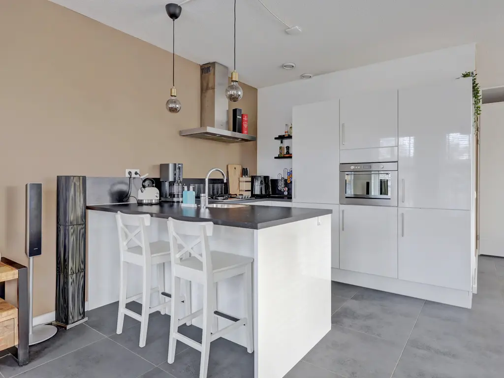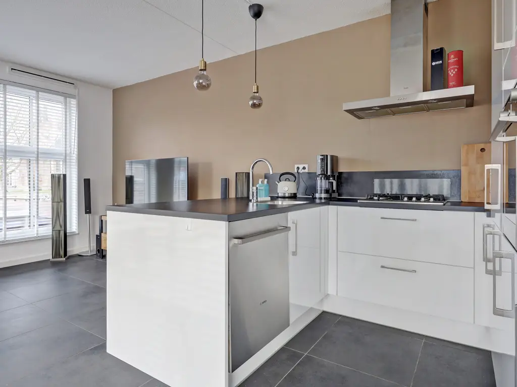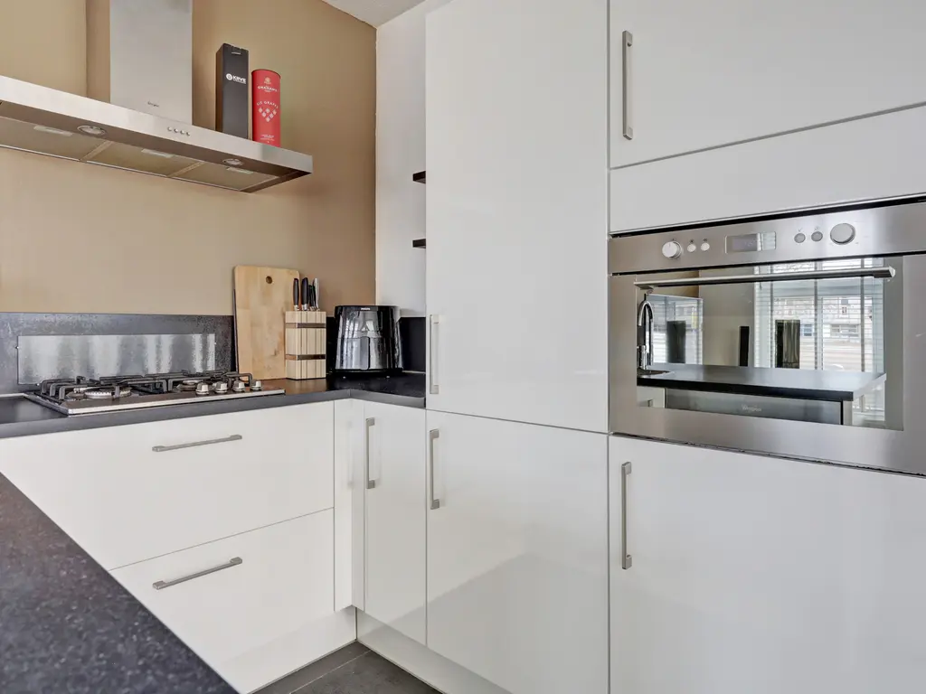 De moderne open keuken met schiereiland vormt het hart van de woning – dé plek om samen te komen. Hier kun je gezellig zitten met vrienden terwijl er gekookt wordt. De keuken is compleet uitgerust met een gaskookplaat, afzuigkap, vaatwasser, koelkast, vriezer en combi-oven.