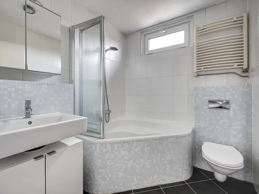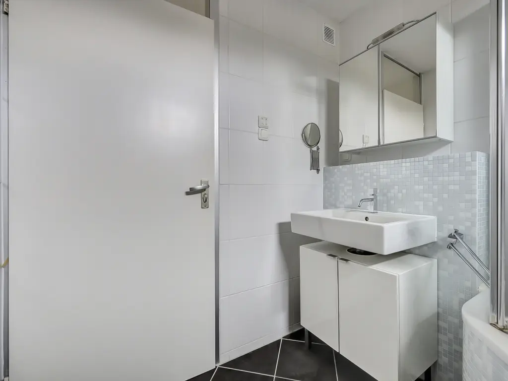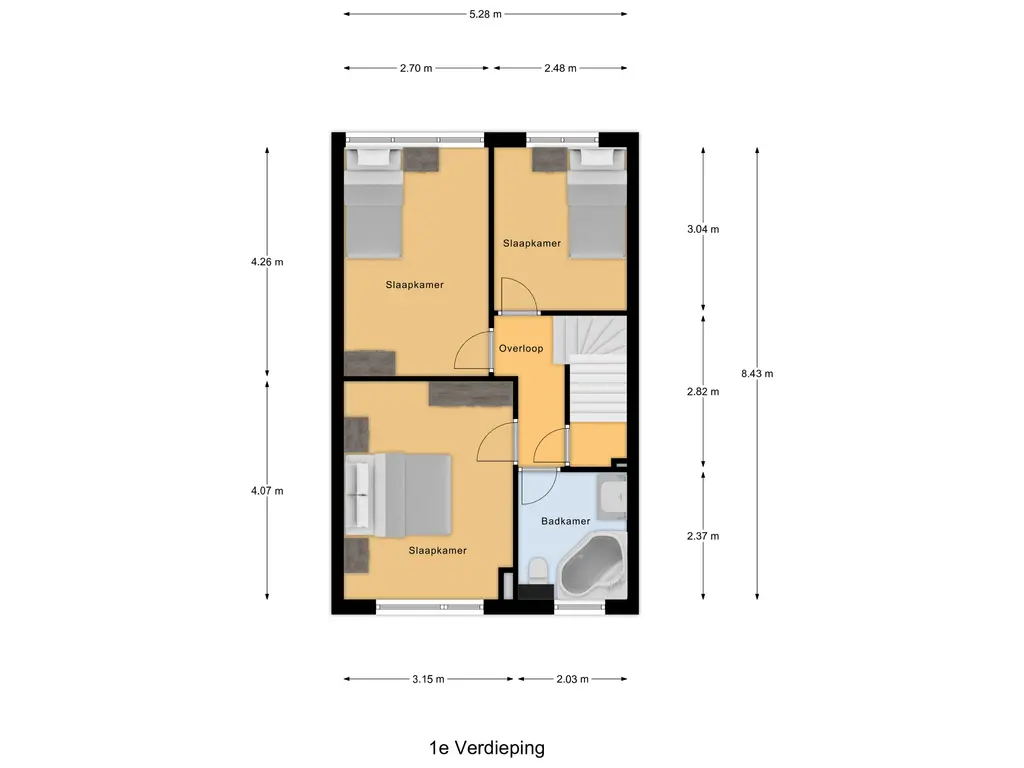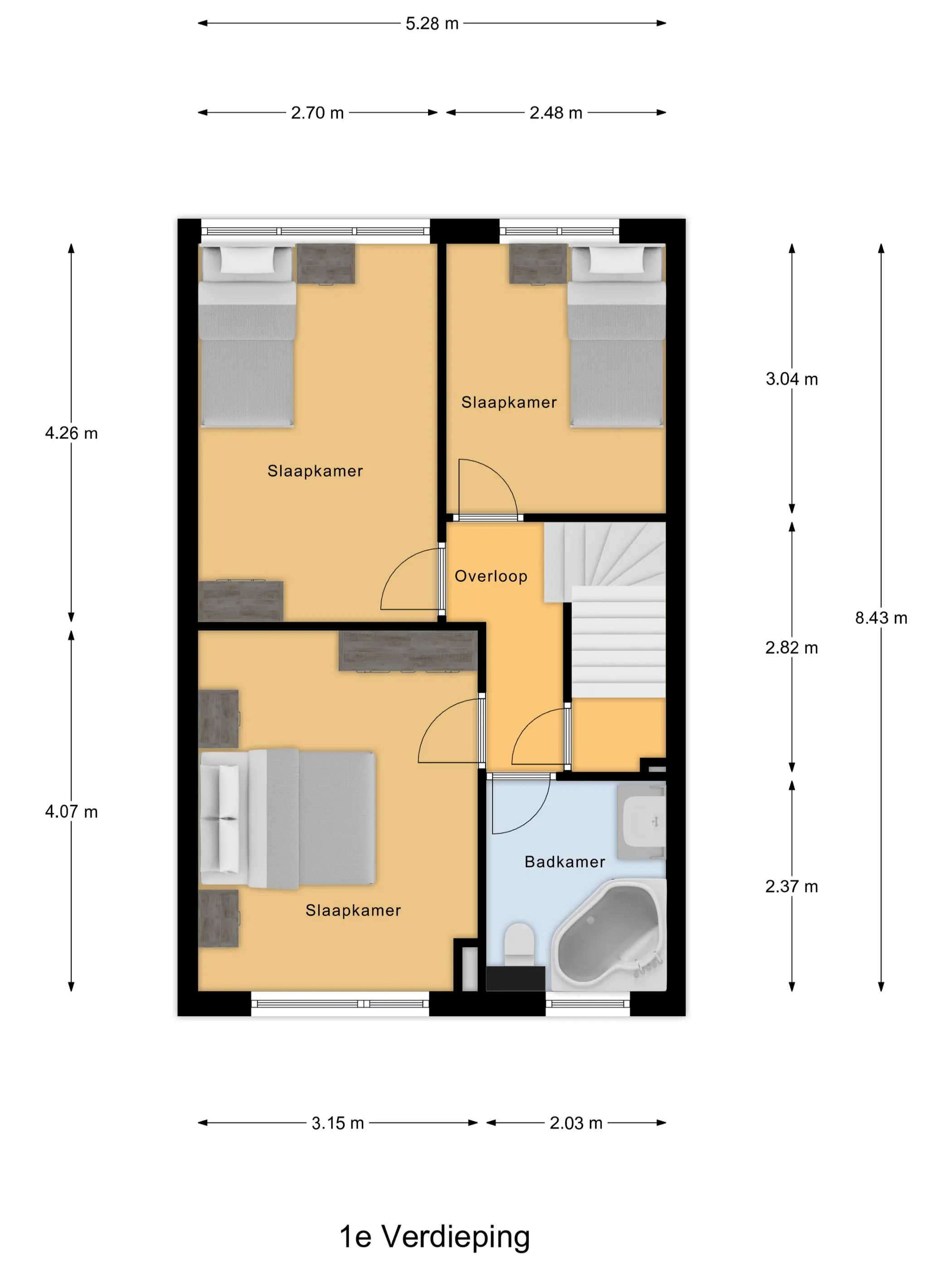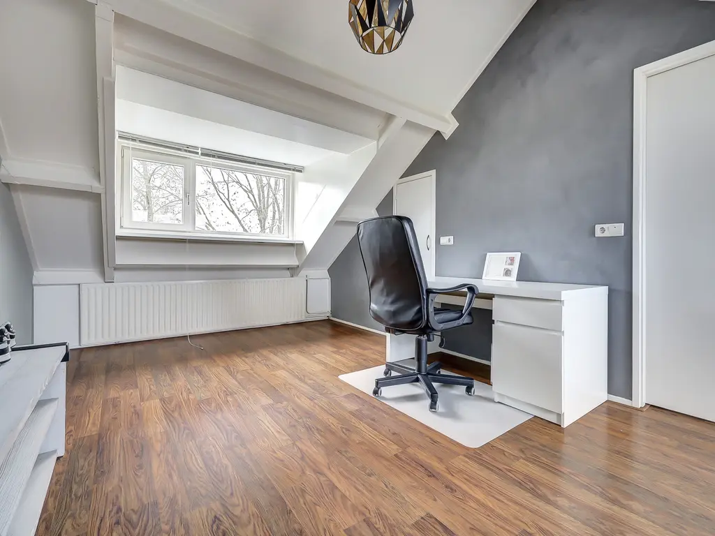 Eerste verdieping Overloop met toegang tot de nette badkamer, voorzien van hoekbad/douche, wastafelmeubel en tweede wandtoilet. Daarnaast zijn er drie ruime slaapkamers met rechte geveloptrek, een laminaatvloer en strak gestuukte wanden en plafonds.