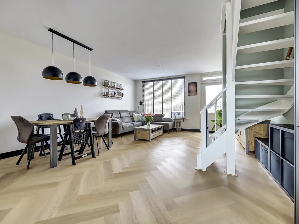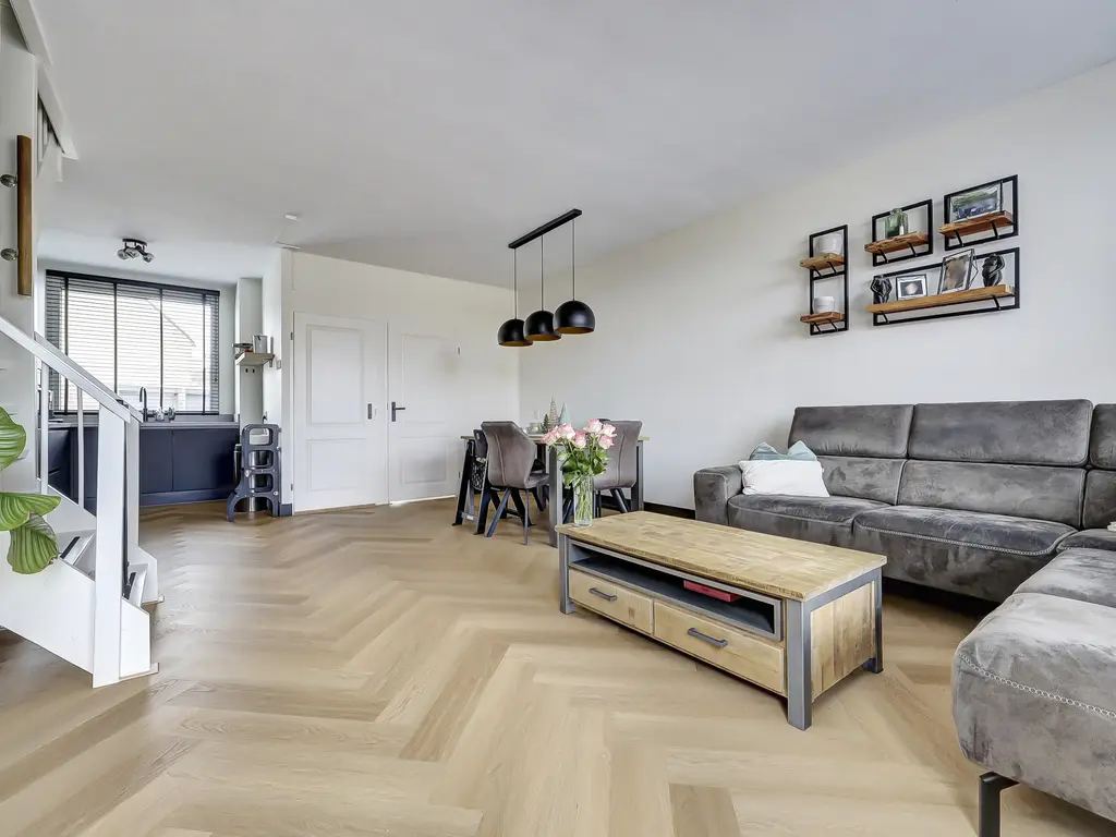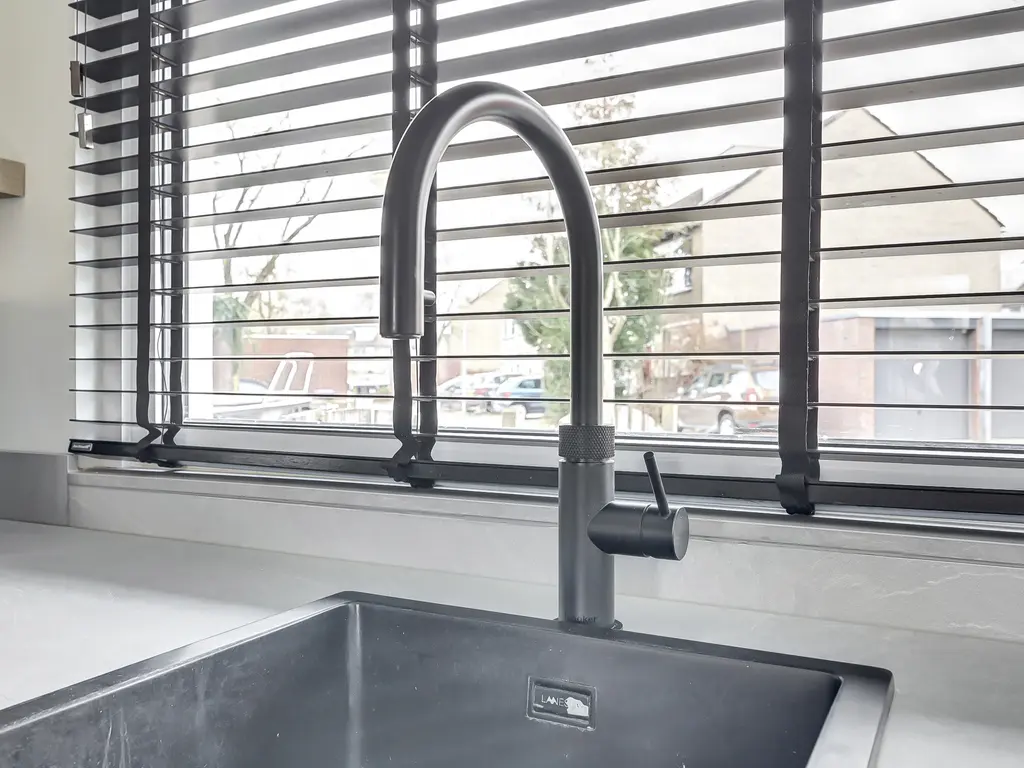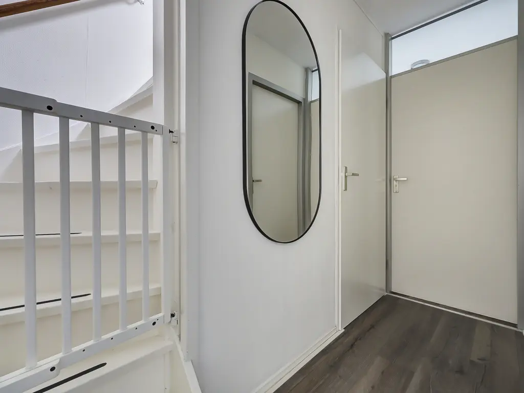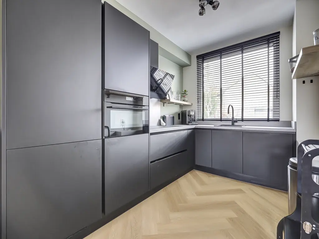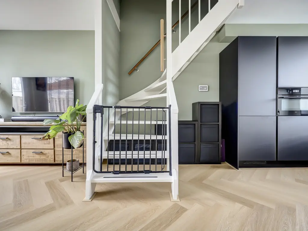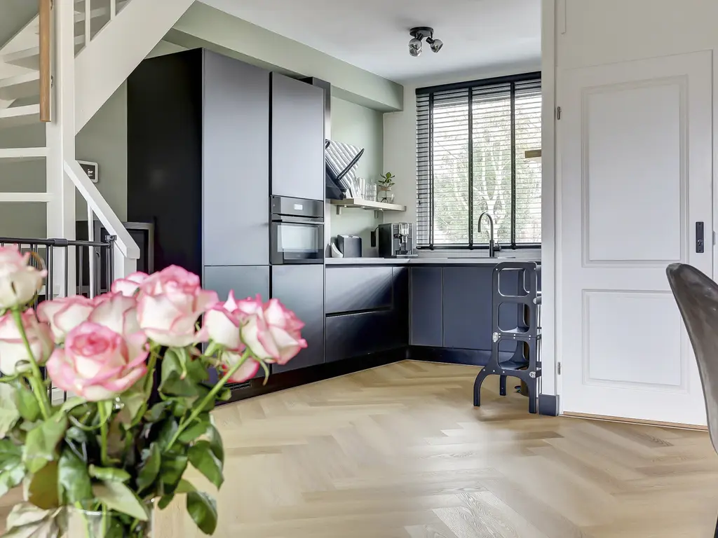 Begane grond: Entree/hal met meterkast en een modern wandtoilet. De stijlvolle zwarte open keuken (2022) is een echte eyecatcher en van alle gemakken voorzien, waaronder een inductiekookplaat, afzuigkap, vaatwasser, combi-oven, koel-vriescombinatie en een luxe zwarte Quooker-kraan. De ruime en lichte woonkamer beschikt over een prachtige PVC visgraatvloer met vloerverwarming (5 groepen), strak gestuukte wanden en plafonds en een deur naar de strak aangelegde achtertuin. De tuin is gelegen aan het park, biedt volop privacy en beschikt over een achterom.