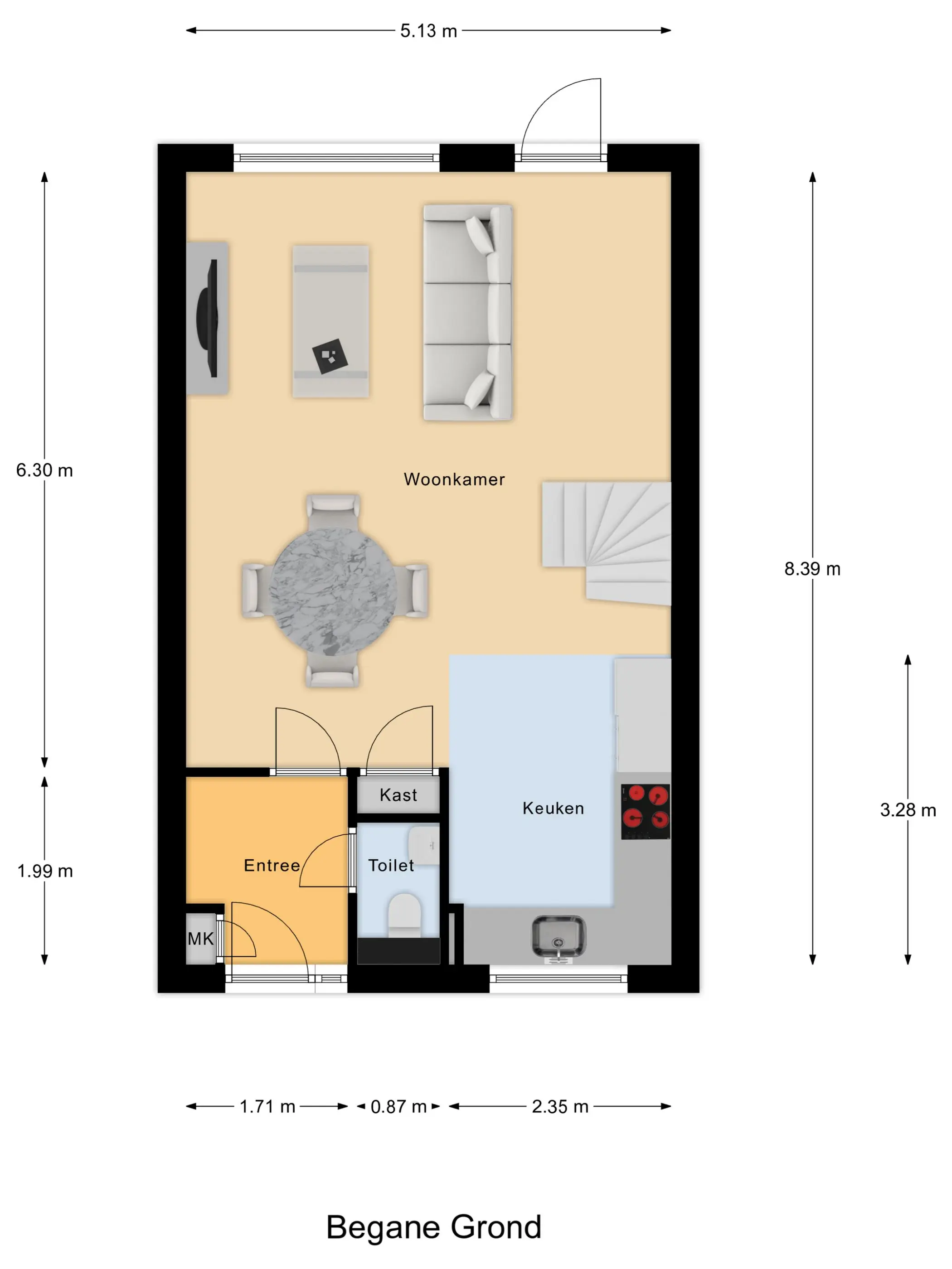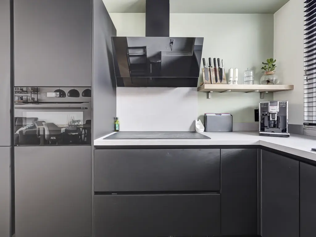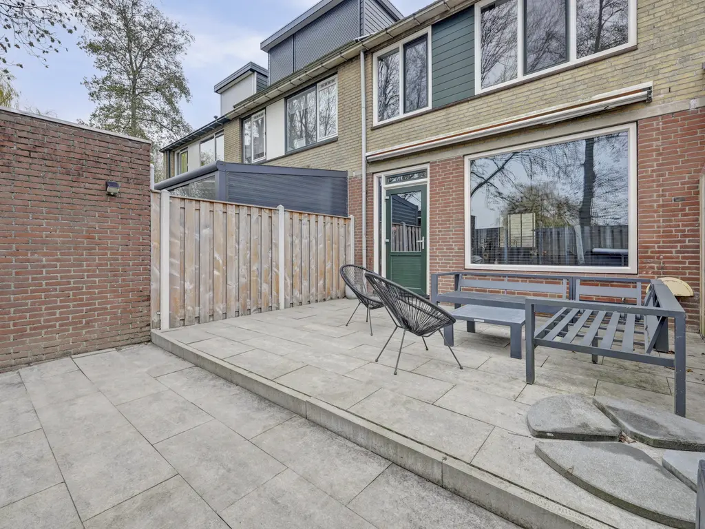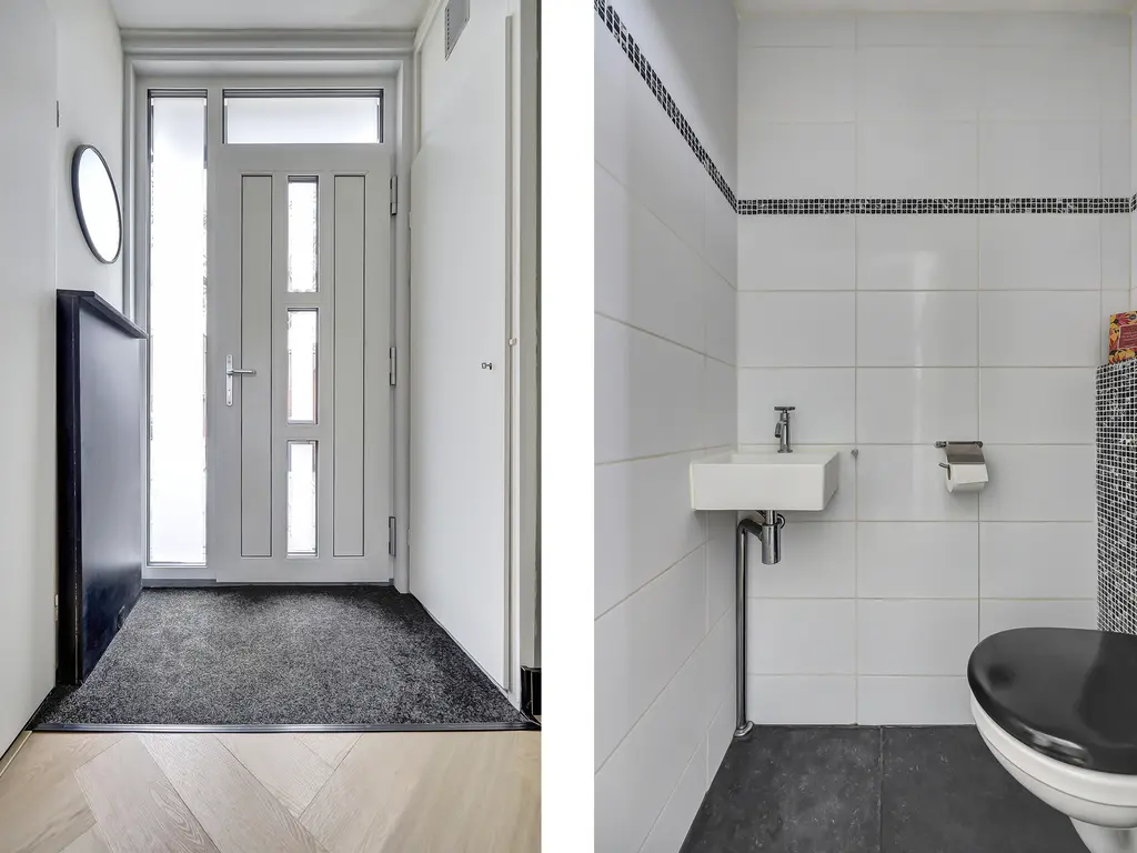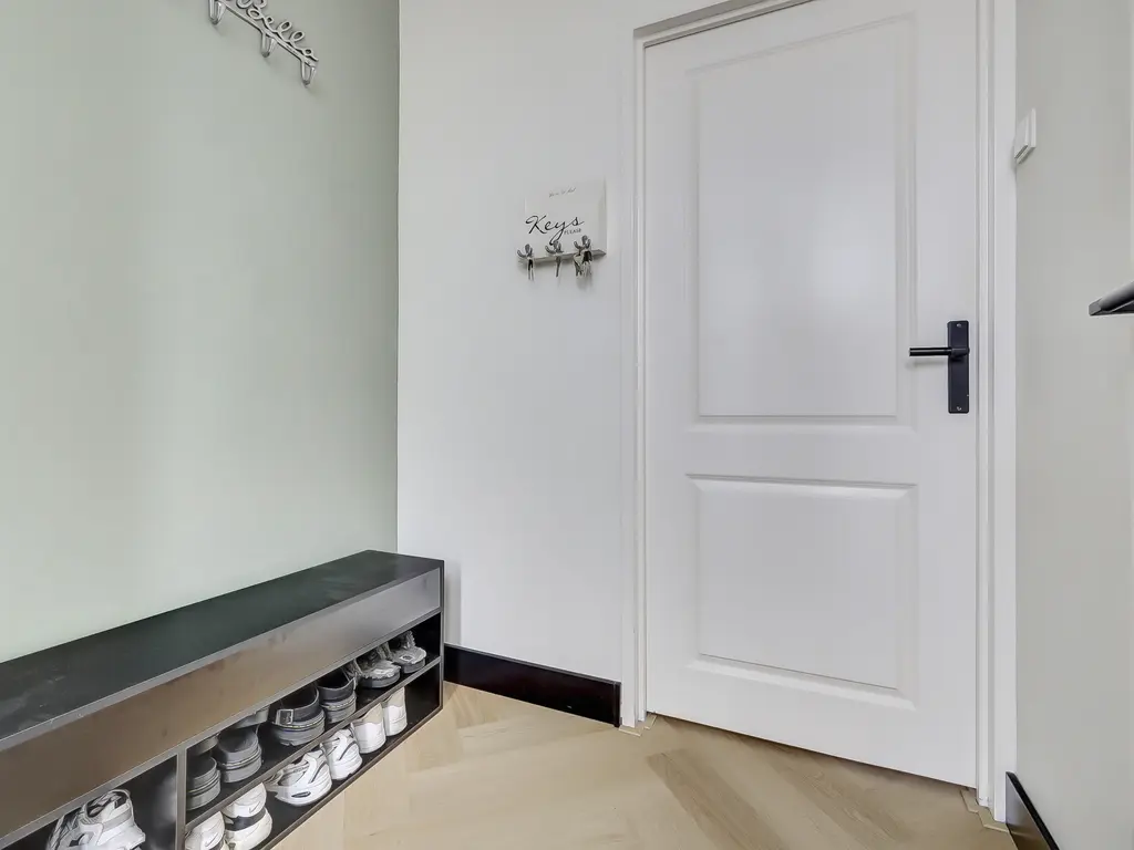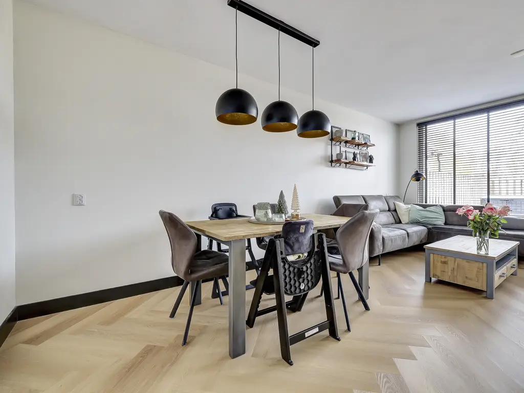 Begane grond: Entree/hal met meterkast en een modern wandtoilet. De stijlvolle zwarte open keuken (2022) is een echte eyecatcher en van alle gemakken voorzien, waaronder een inductiekookplaat, afzuigkap, vaatwasser, combi-oven, koel-vriescombinatie en een luxe zwarte Quooker-kraan. De ruime en lichte woonkamer beschikt over een prachtige PVC visgraatvloer met vloerverwarming (5 groepen), strak gestuukte wanden en plafonds en een deur naar de strak aangelegde achtertuin. De tuin is gelegen aan het park, biedt volop privacy en beschikt over een achterom.