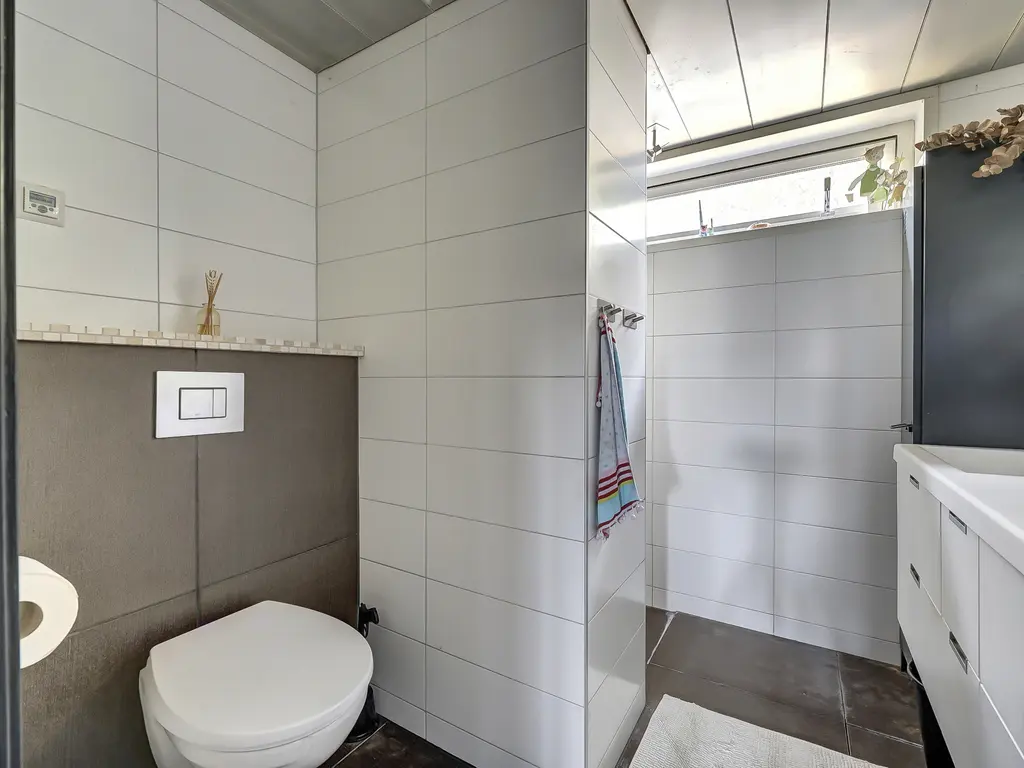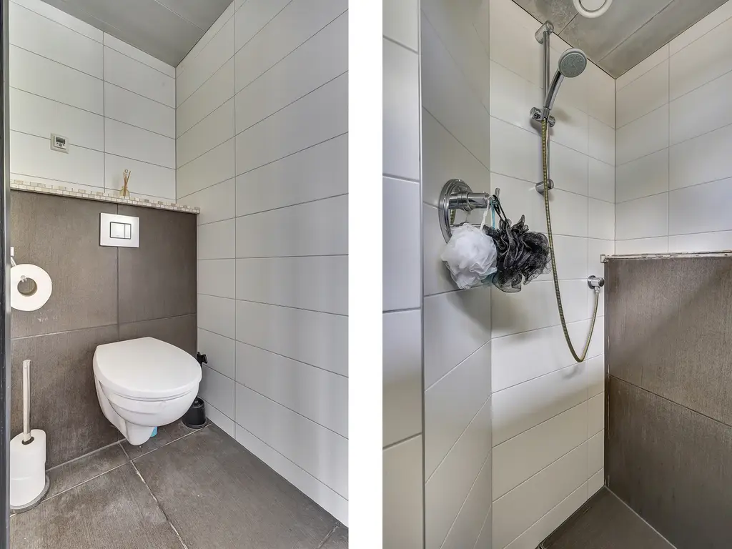 1e Verdieping: De overloop geeft toegang tot drie verzorgde slaapkamers, alle voorzien van een laminaatvloer. Aan de achterzijde is een grote dakkapel geplaatst, wat zorgt voor extra ruimte en lichtinval. De moderne badkamer is tot bovenaan betegeld en beschikt over een inloopdouche, dubbele wastafel met meubel en een tweede toilet.