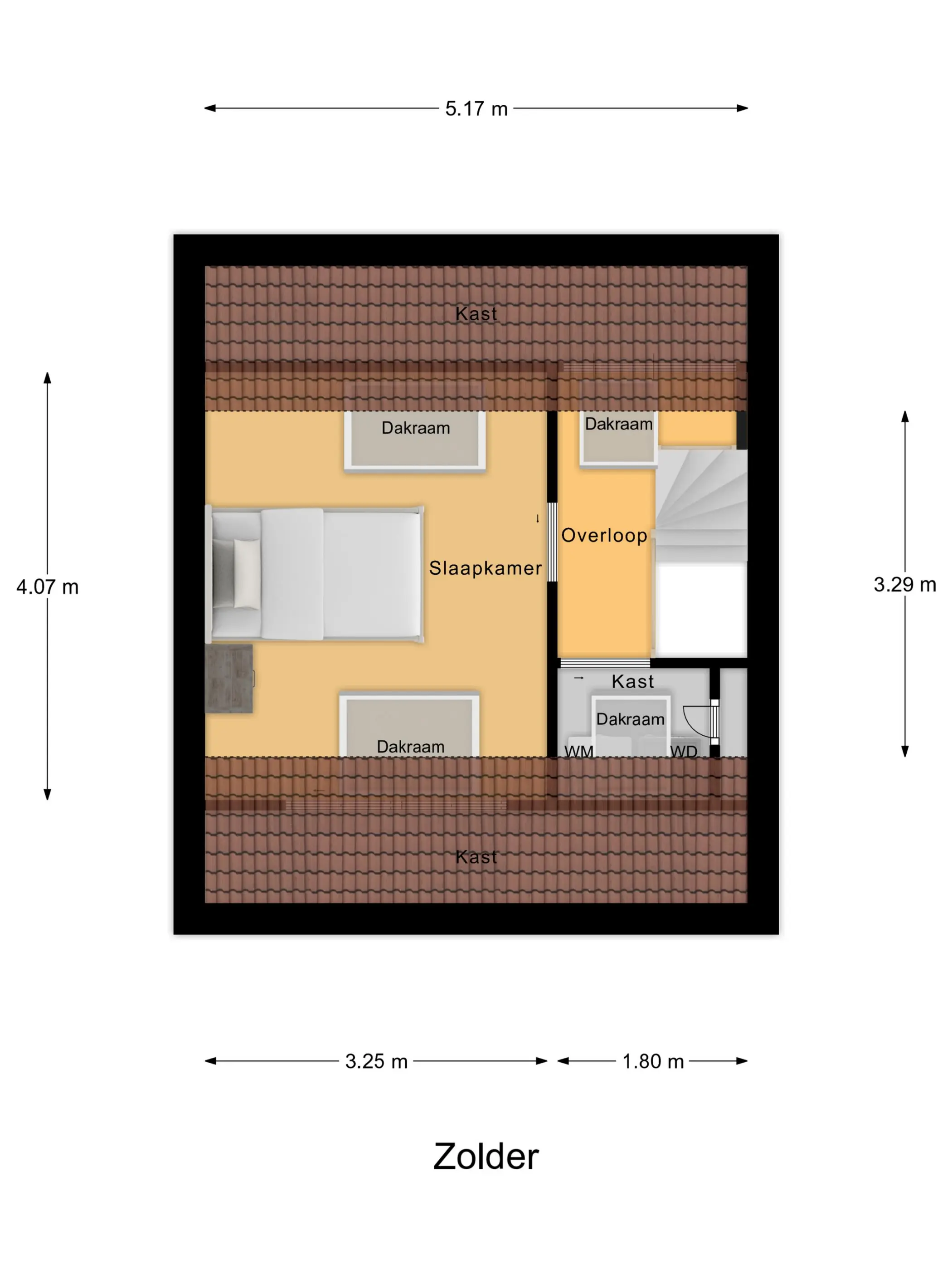 2e Verdieping: Via de voorzolder kom je bij de wasruimte met aansluiting voor wasmachine en droger, en de CV-opstelling (2023). Tevens is hier een ruime vierde slaapkamer, voorzien van dakramen aan beide zijden.