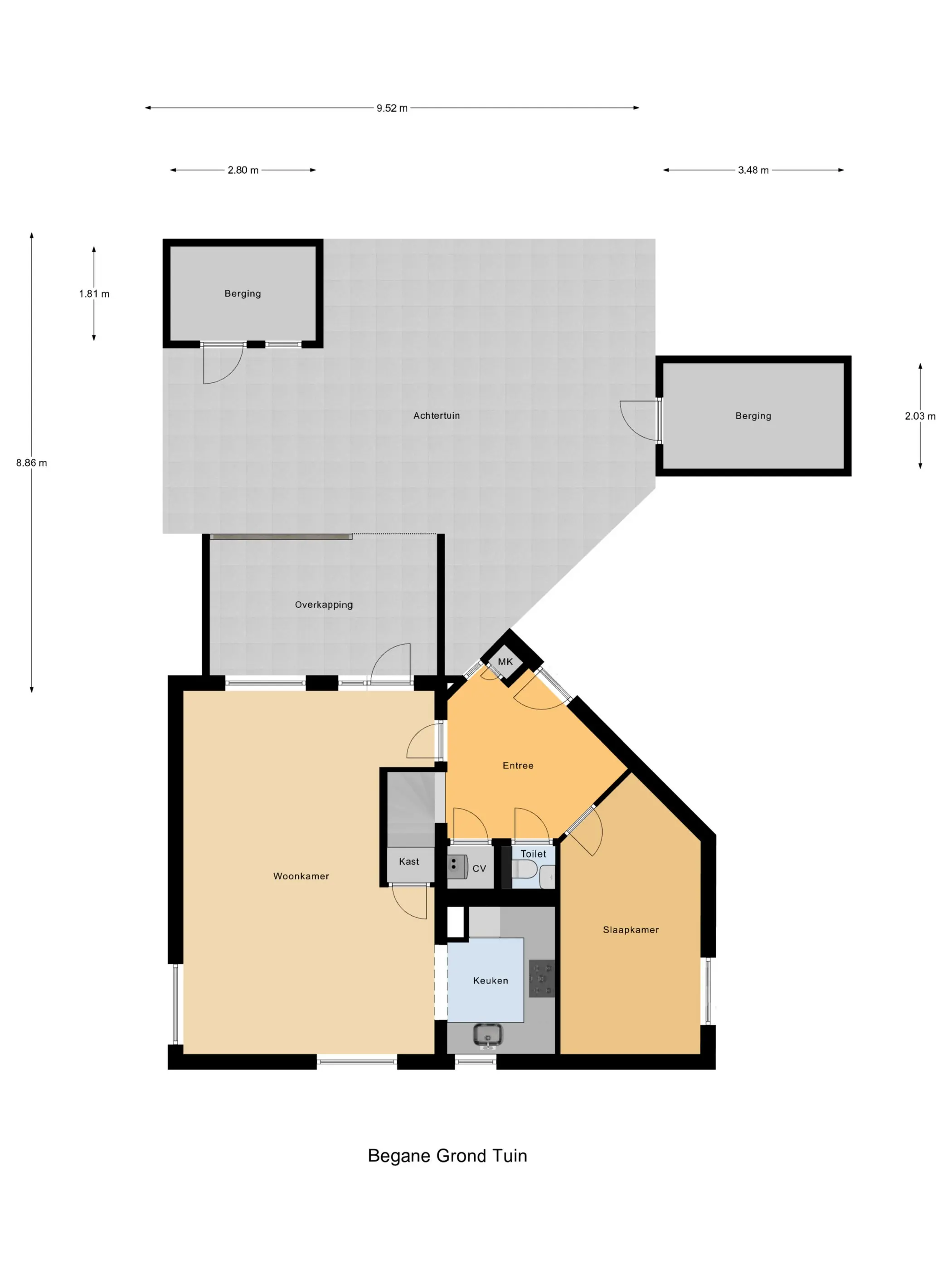 - Inpandige schuur, bereikbaar vanuit de tuin