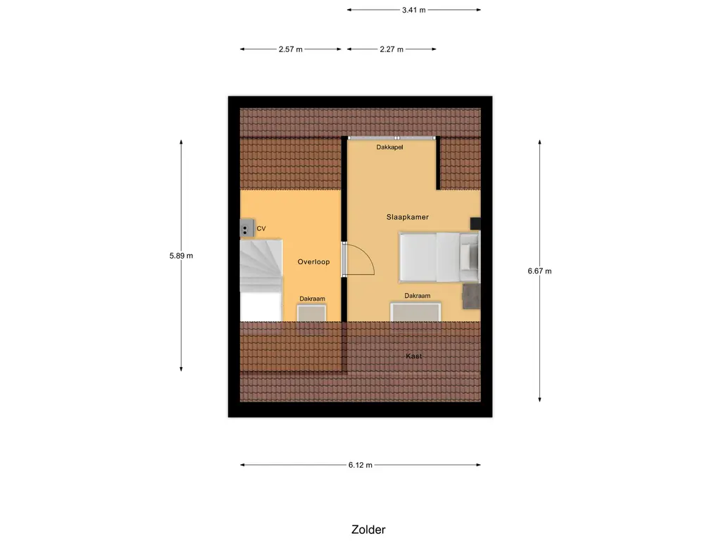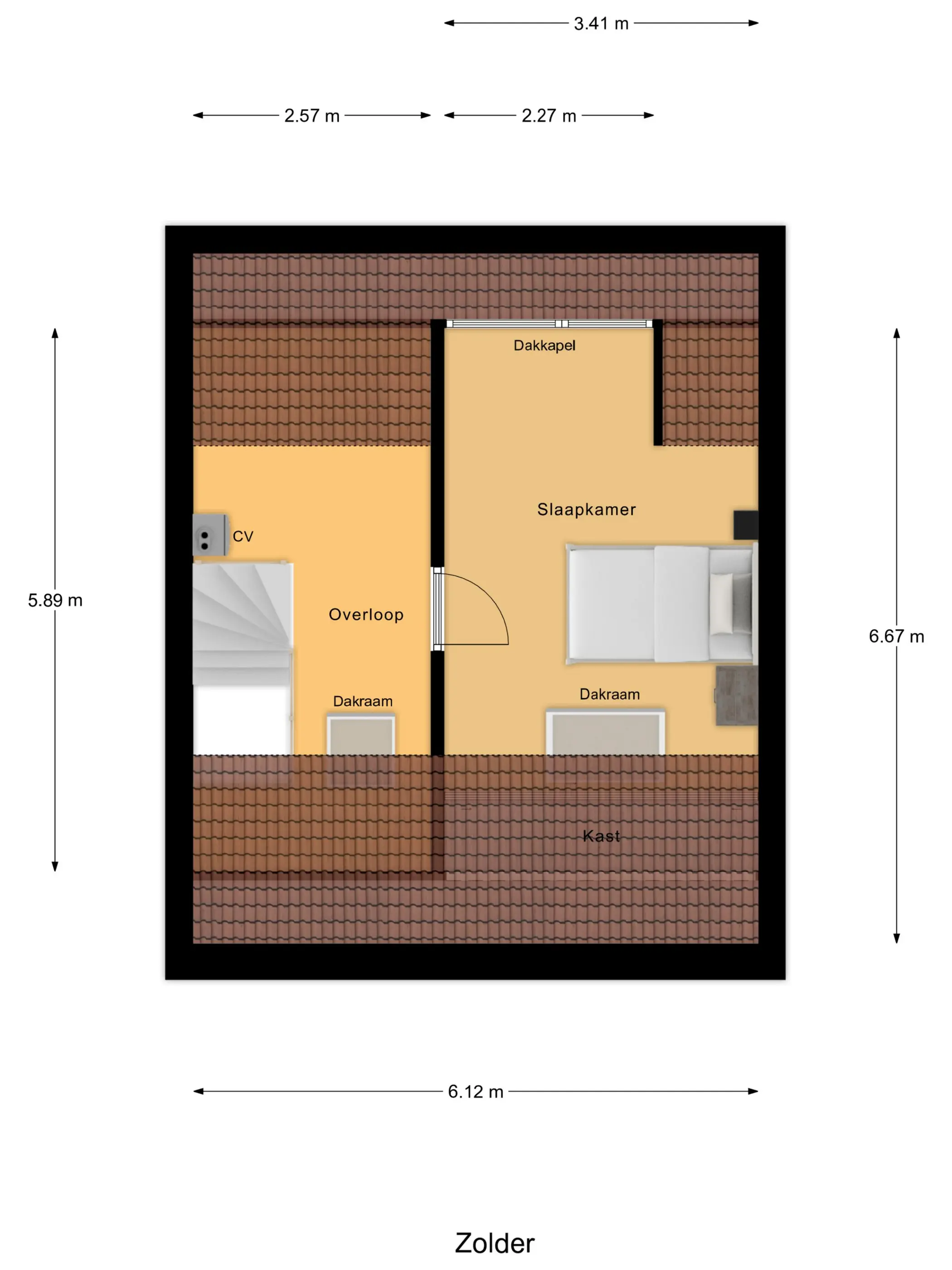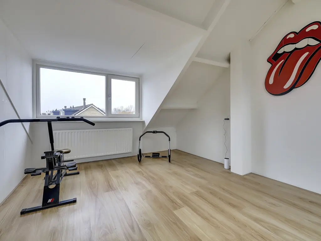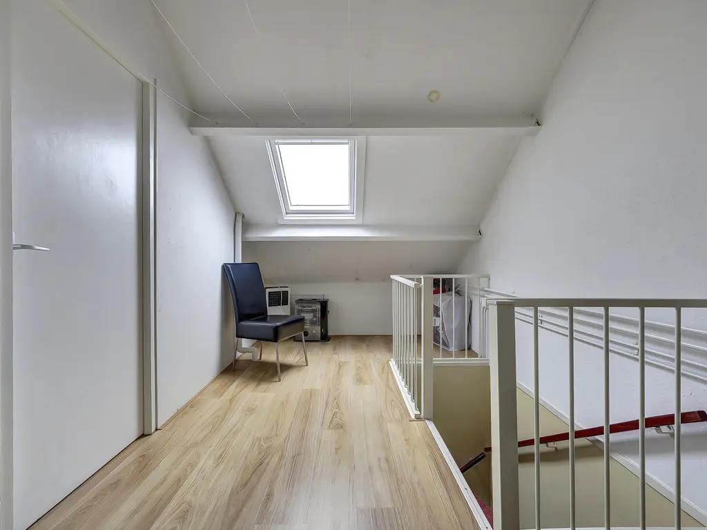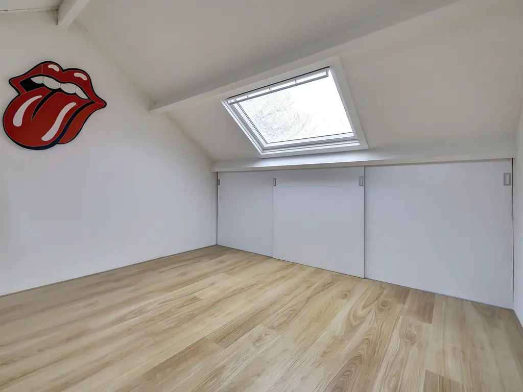 Tweede verdieping: Op de voorzolder vind je de opstelling van de cv-ketel (Atag 2022) en een dakraam dat zorgt voor prettig daglicht. Daarnaast is hier een ruime vierde slaapkamer met kunststof dakkapel en extra dakraam gerealiseerd. Achter de knieschotten bevindt zich praktische bergruimte.