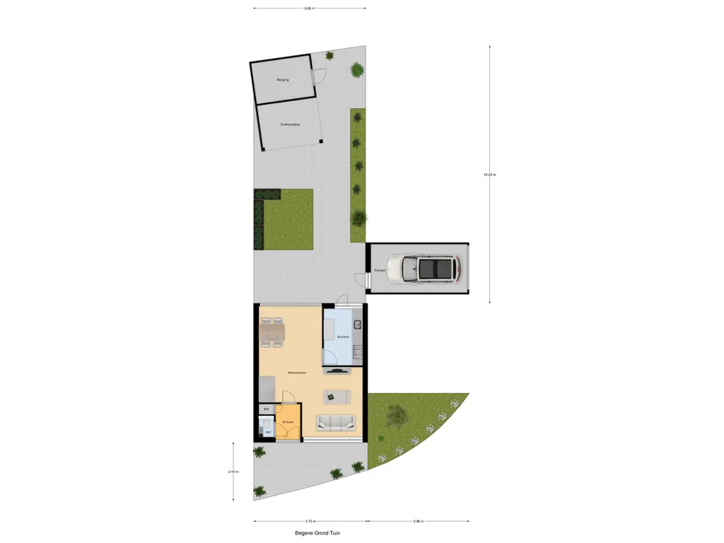- Garage welke bereikbaar via de tuin