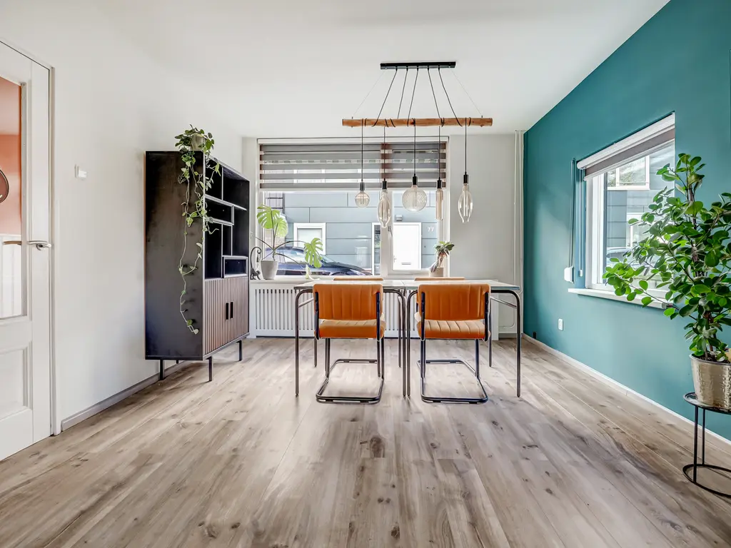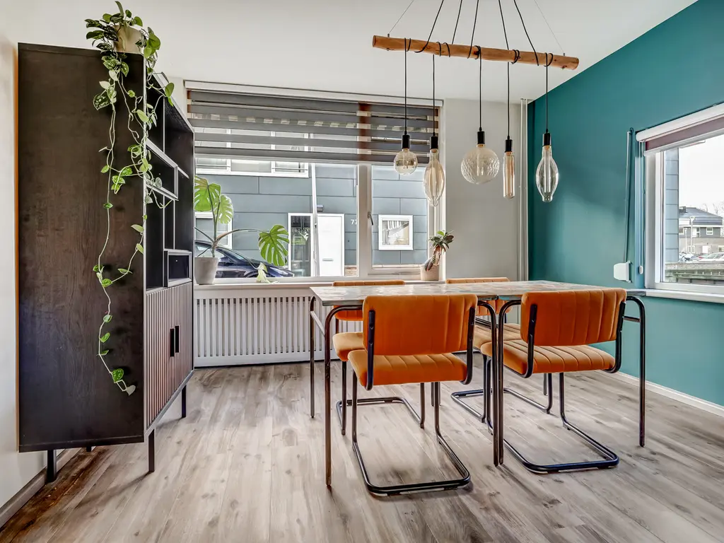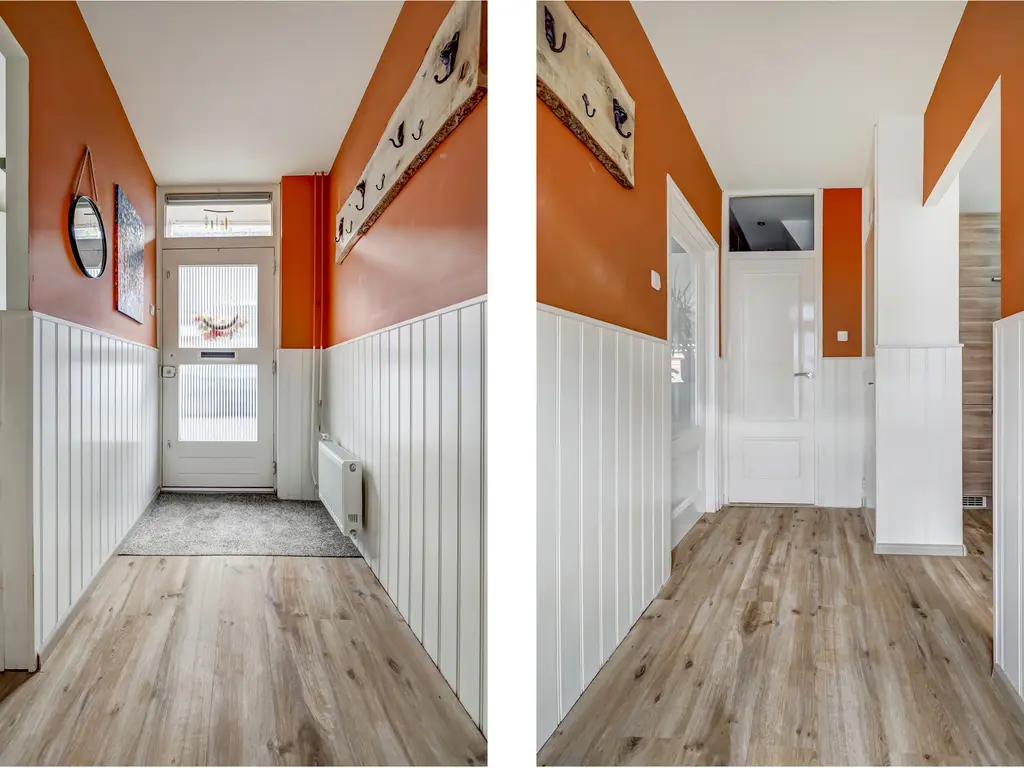 Je komt binnen in de hal met meterkast en toegang tot de woonkamer. De lichte doorzonwoonkamer met zijraam biedt een prettig uitzicht over de polder en heeft genoeg ruimte voor zowel een gezellige zithoek als een ruime eethoek. De wanden zijn strak gestuukt en de laminaatvloer maakt het geheel helemaal af.