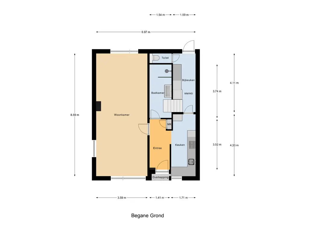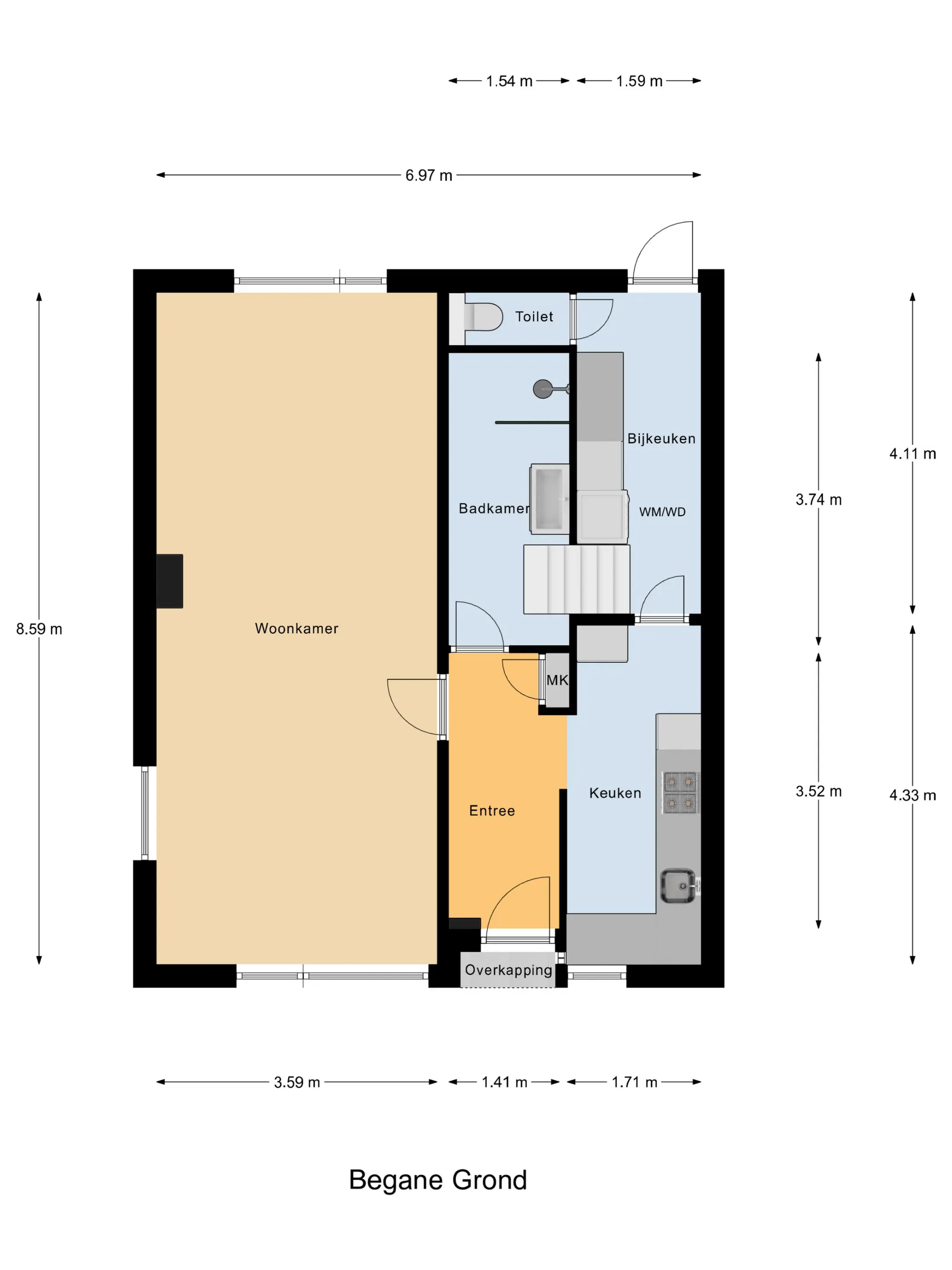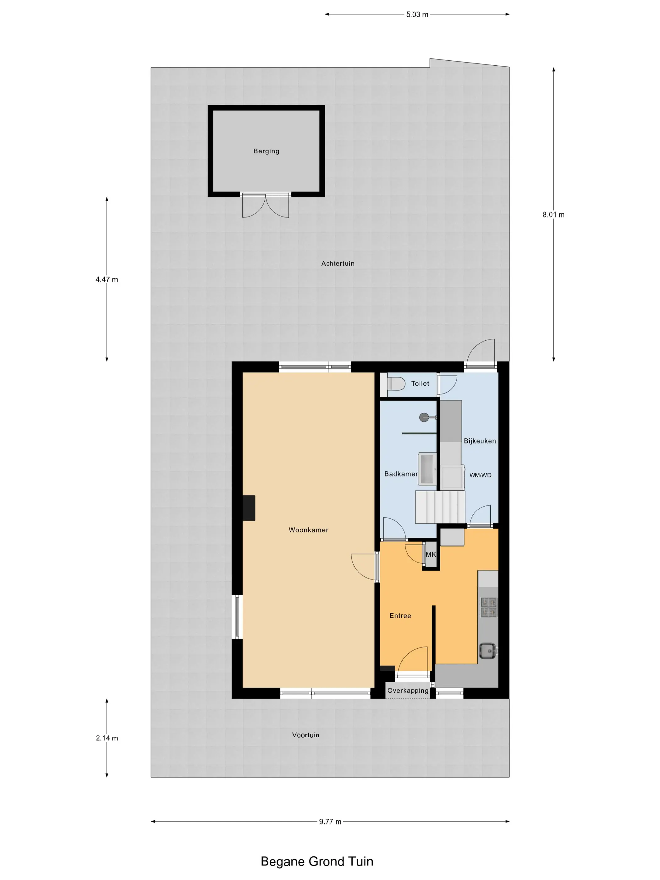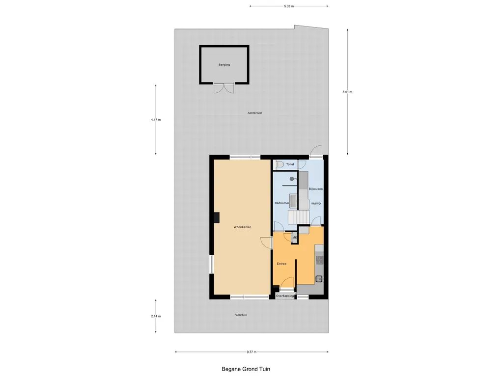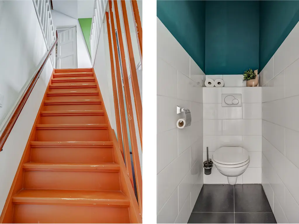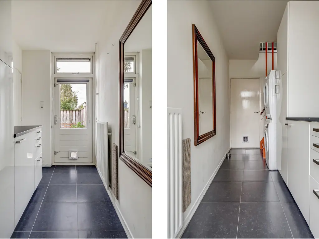 Aansluitend vind je de bijkeuken, met ruimte voor de wasmachine en droger, het separate toilet (zonder fonteintje) en toegang tot de tuin.