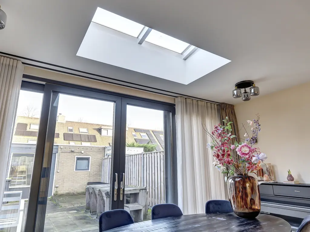 De moderne keuken is aan de voorzijde van de woning gesitueerd en uitgevoerd in een praktische L-opstelling. Deze is voorzien van diverse inbouwapparatuur, waaronder een vaatwasser, koelkast, inductie fornuis en afzuigkap.