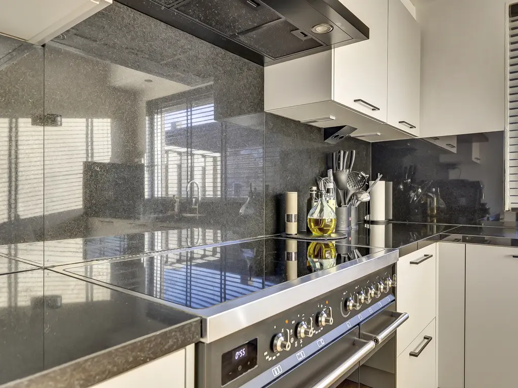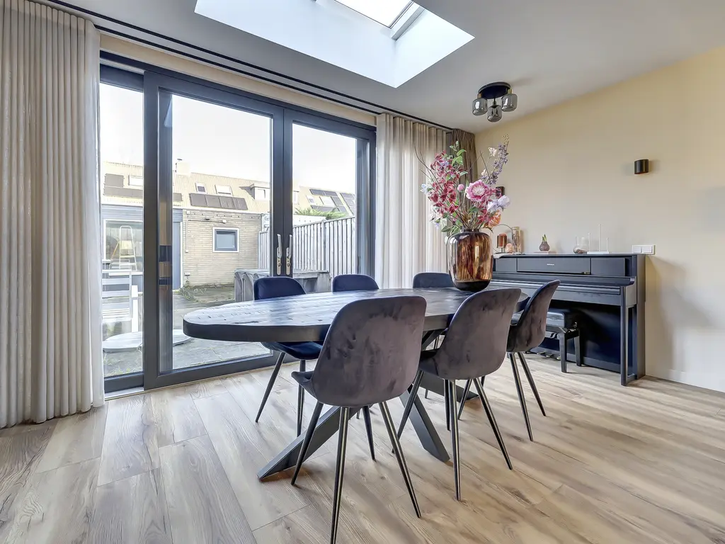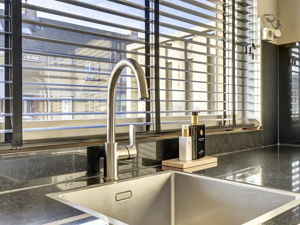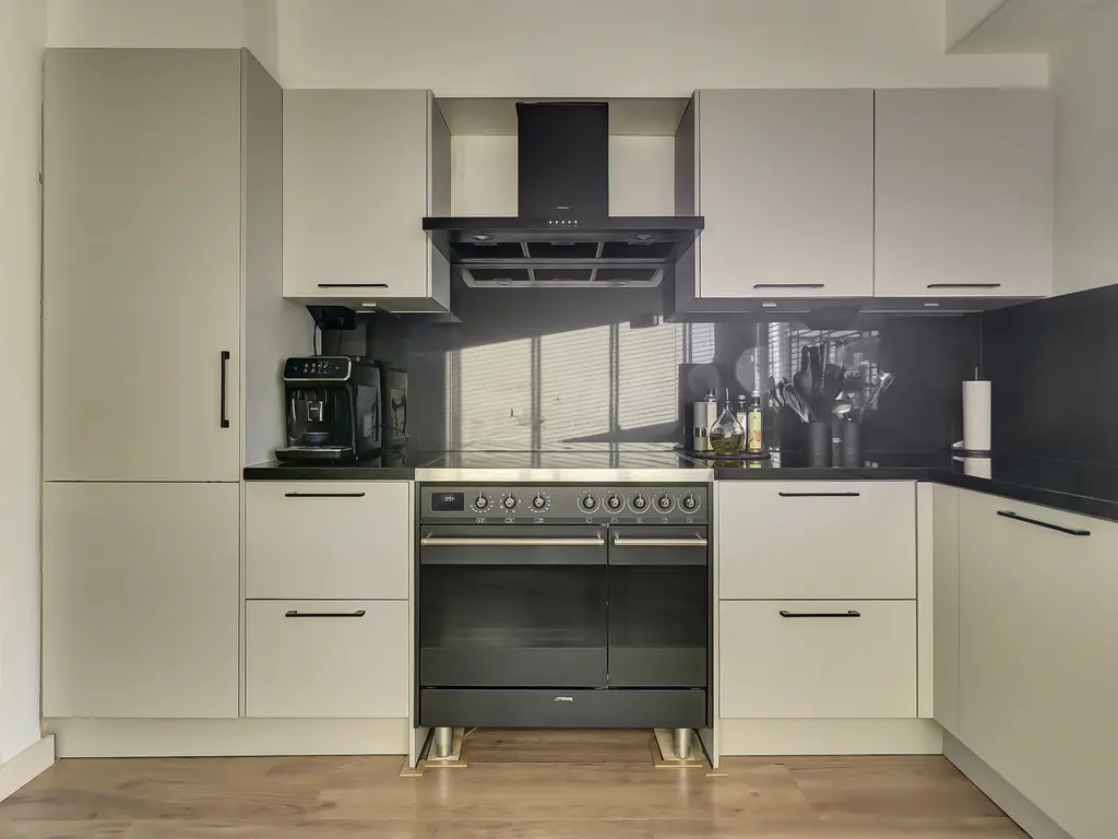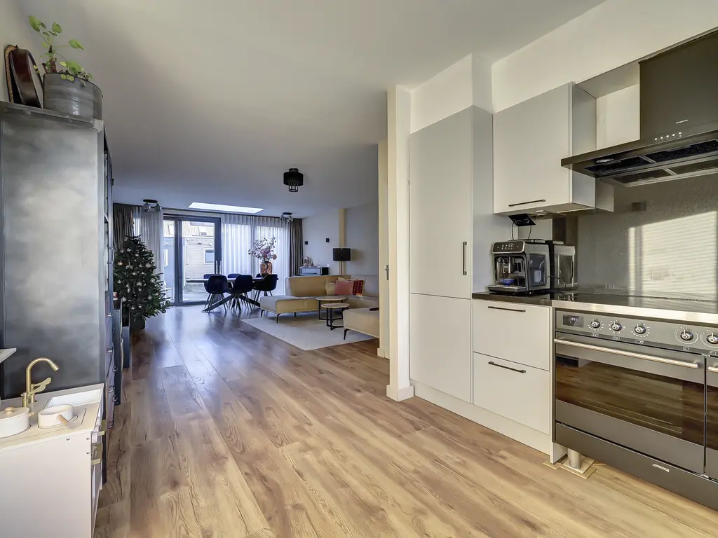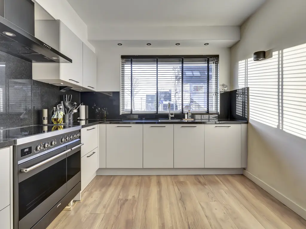 De moderne keuken is aan de voorzijde van de woning gesitueerd en uitgevoerd in een praktische L-opstelling. Deze is voorzien van diverse inbouwapparatuur, waaronder een vaatwasser, koelkast, inductie fornuis en afzuigkap.