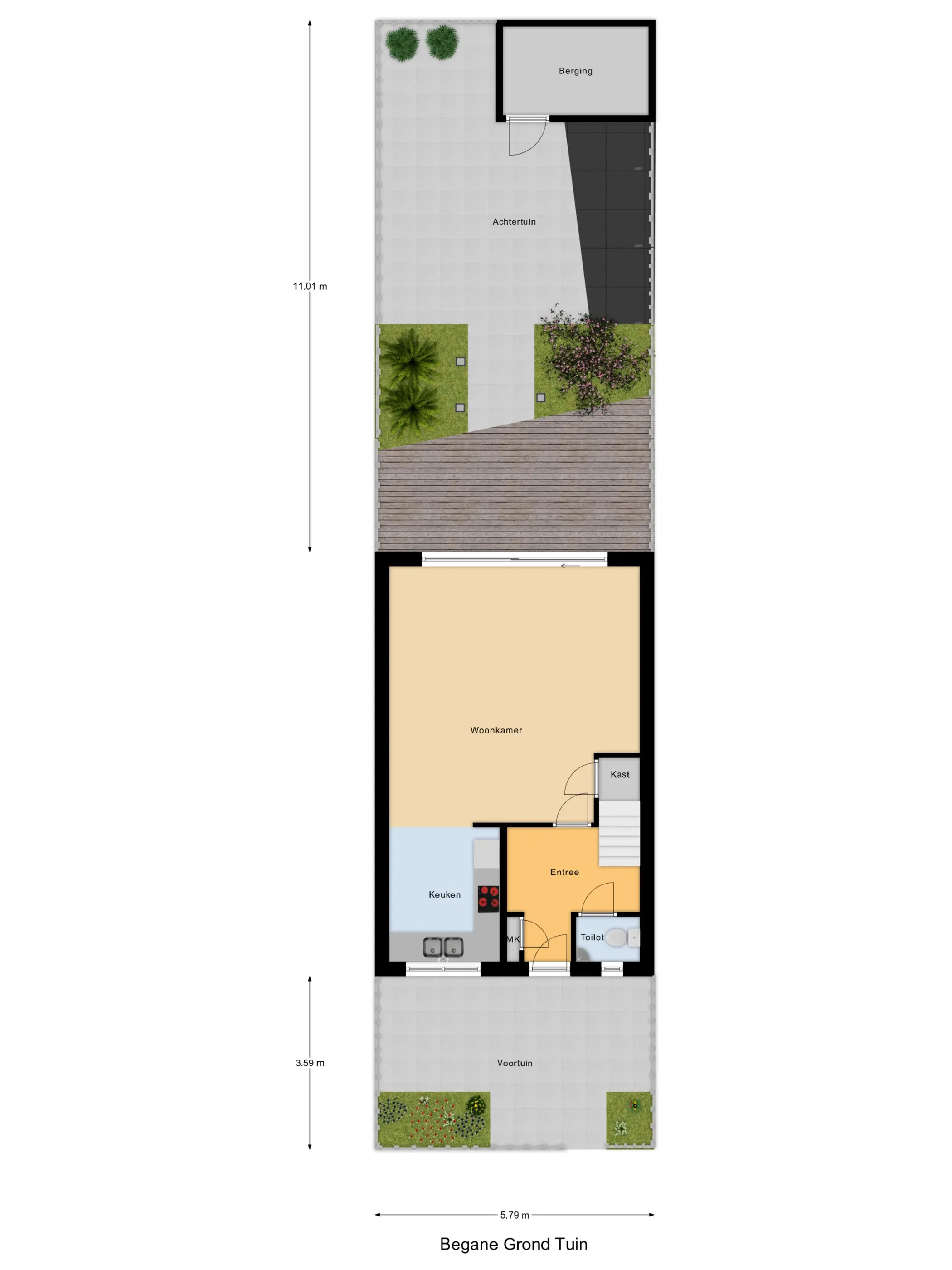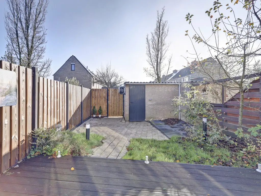 - Zonnige achtertuin (Z/ZO) met stenen berging en achterom