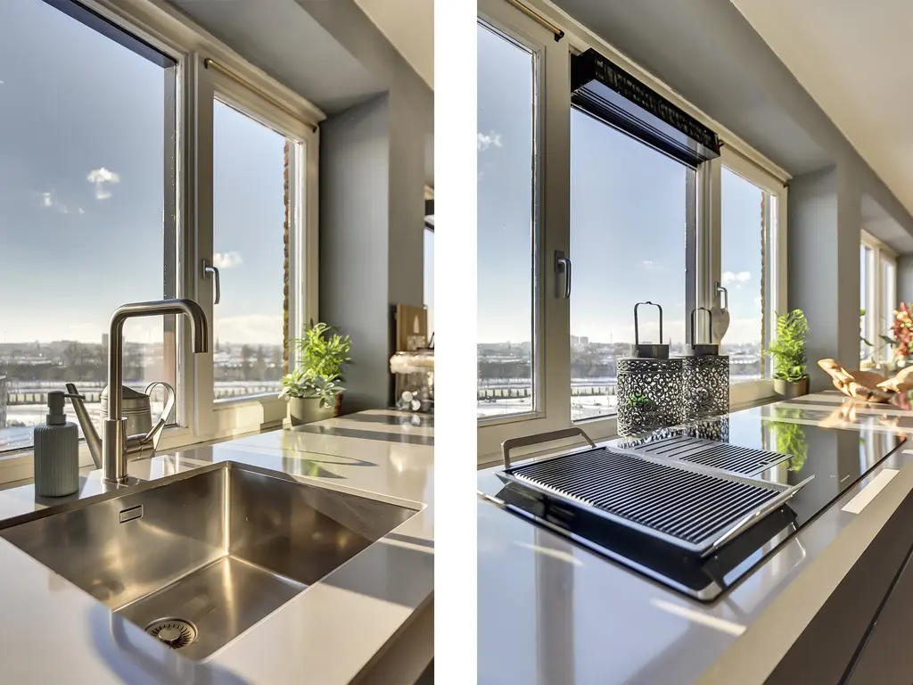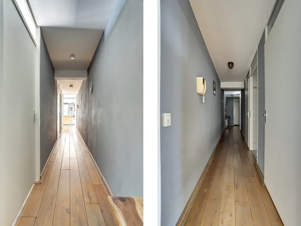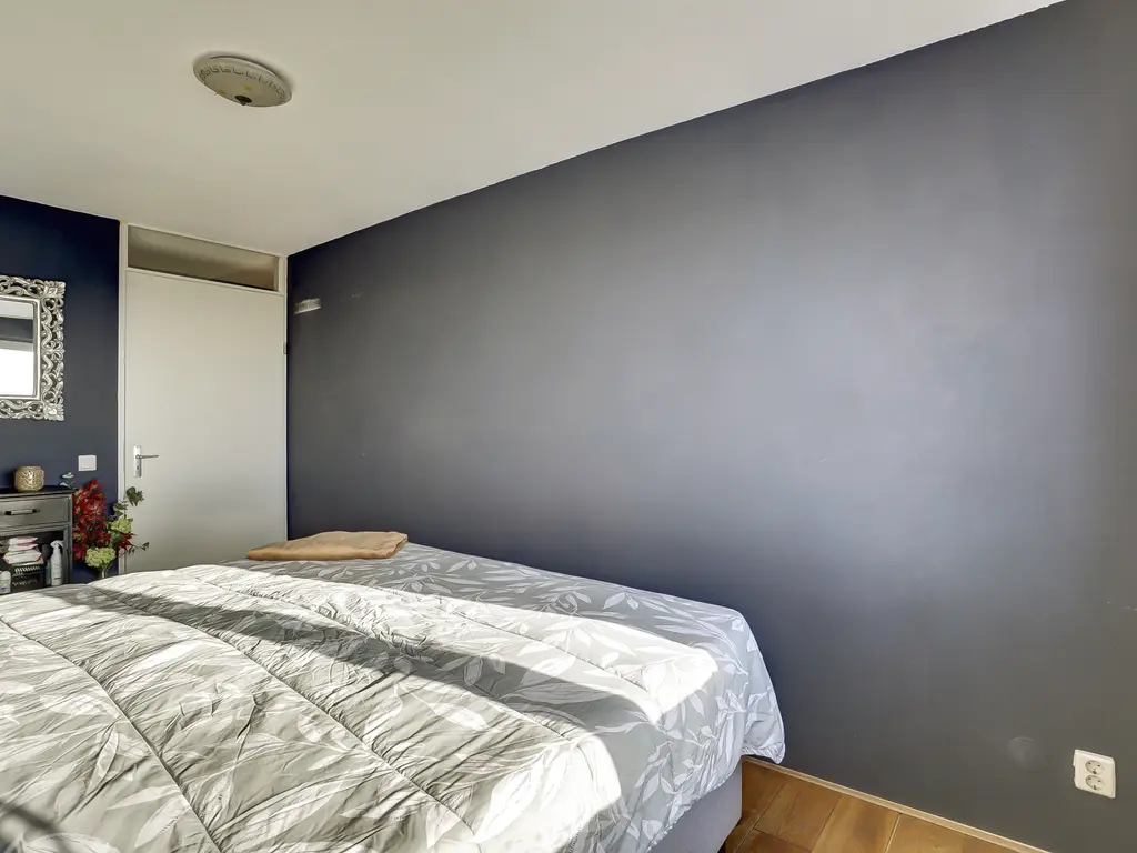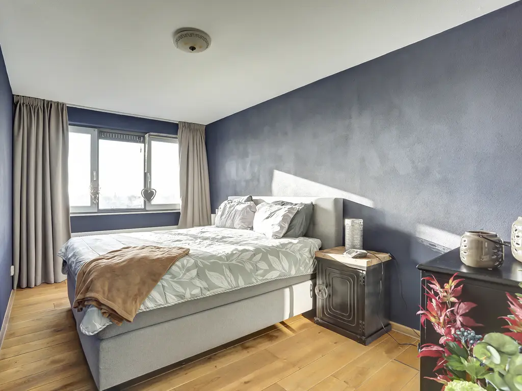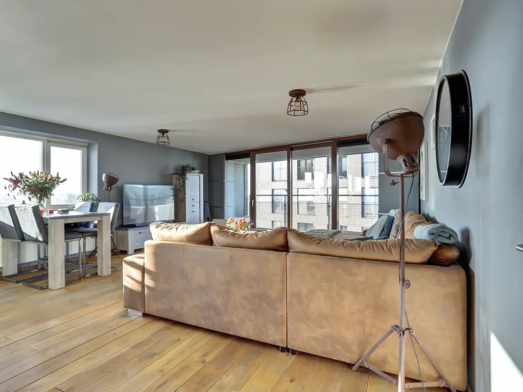De royale woonkamer is een fijne plek om te ontspannen, met grote ramen, een prettige lichtinval en directe toegang tot het ruime balkon. De moderne open keuken (2020) is uitgevoerd in een strakke dubbele wandopstelling en voorzien van alle gewenste inbouwapparatuur: een inductiekookplaat met geïntegreerde afzuiging en grillplaat, vaatwasser, koelkast, vriezer, oven én combi-oven. Koken met uitzicht was nog nooit zo leuk! Het gehele appartement is afgewerkt met een fraaie houten vloer die zorgt voor een warme en luxe uitstraling.