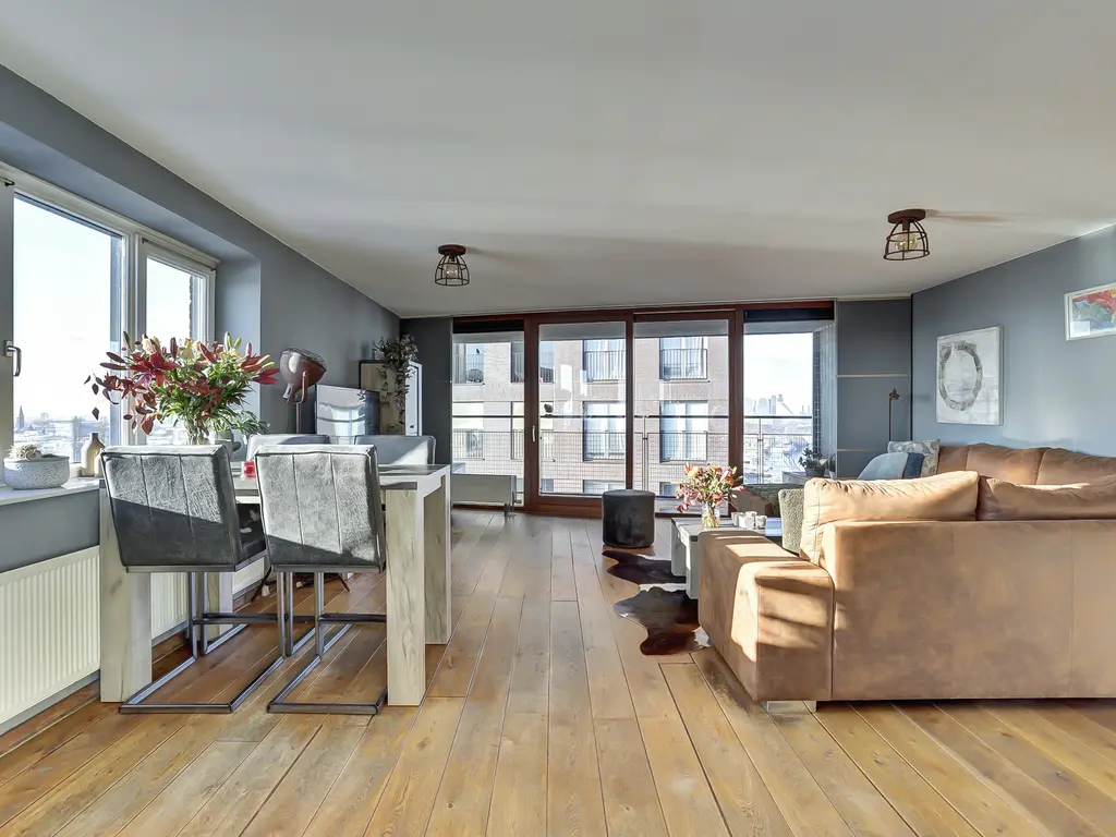Welkom op de 10e verdieping van het markante complex ‘Ruysdael’, waar comfort, licht en uitzicht perfect samenkomen. Dit heerlijke 3-kamer hoekappartement verrast je met een moderne uitstraling, een fijne buitenruimte, energielabel A én een eigen parkeerplaats. Dankzij de hoekligging stroomt het daglicht rijkelijk naar binnen en geniet je van een prachtig panoramisch uitzicht – tot aan De Kuip aan toe. Zin in zorgeloos en comfortabel wonen met alles binnen handbereik? Dan ben je hier helemaal thuis.
