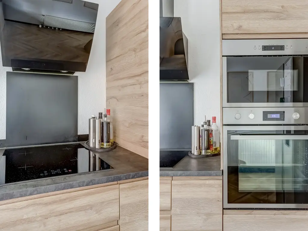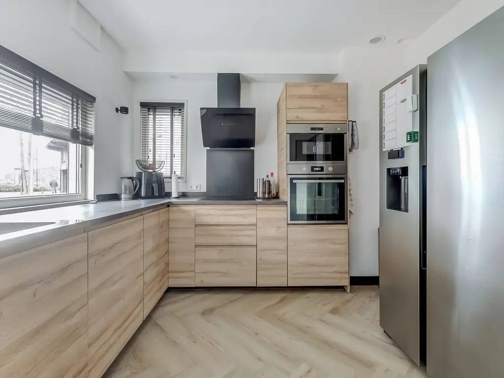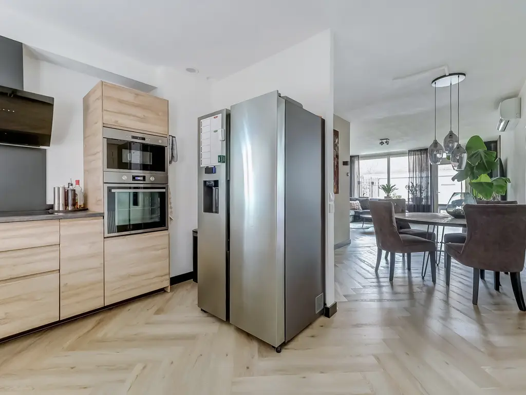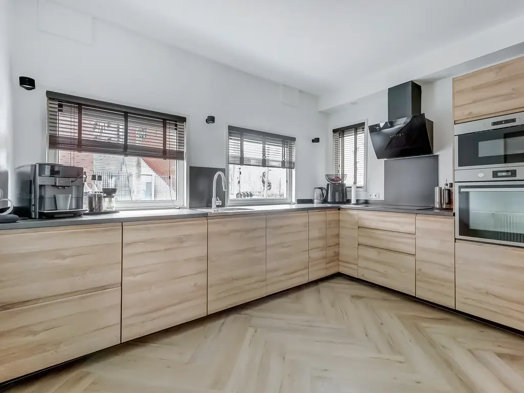 De luxe keuken in hoekopstelling is voorzien van alle gewenste inbouwapparatuur: inductiekookplaat, afzuigkap, vaatwasser, oven, magnetron én een praktische close-in-boiler. Koken wordt hier een feestje!