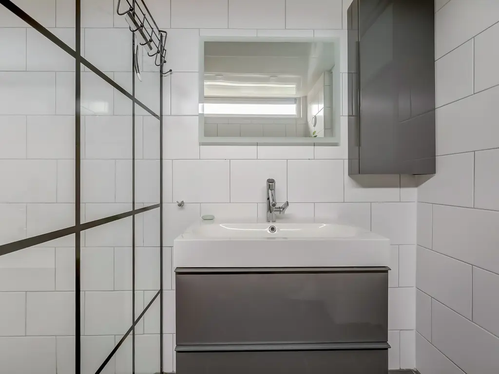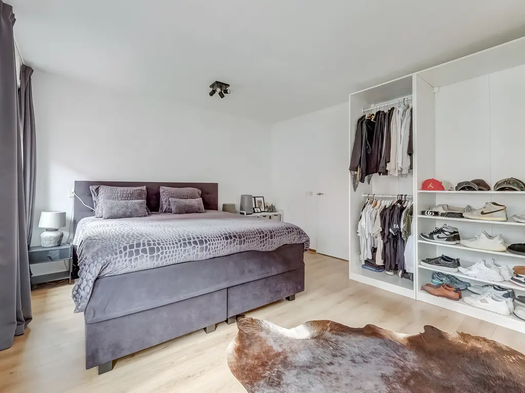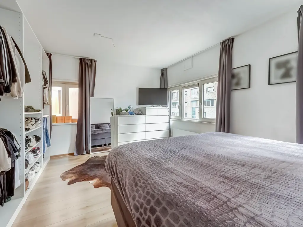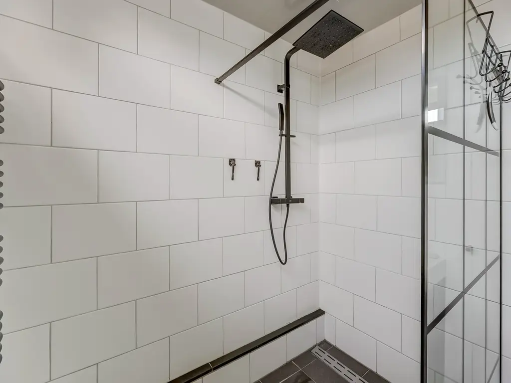 Eerste verdieping: De overloop geeft toegang tot een royale slaapkamer (voorheen twee kamers), de moderne badkamer en het heerlijke dakterras. De badkamer is strak afgewerkt en voorzien van een inloopdouche, tweede toilet, wastafelmeubel en designradiator.