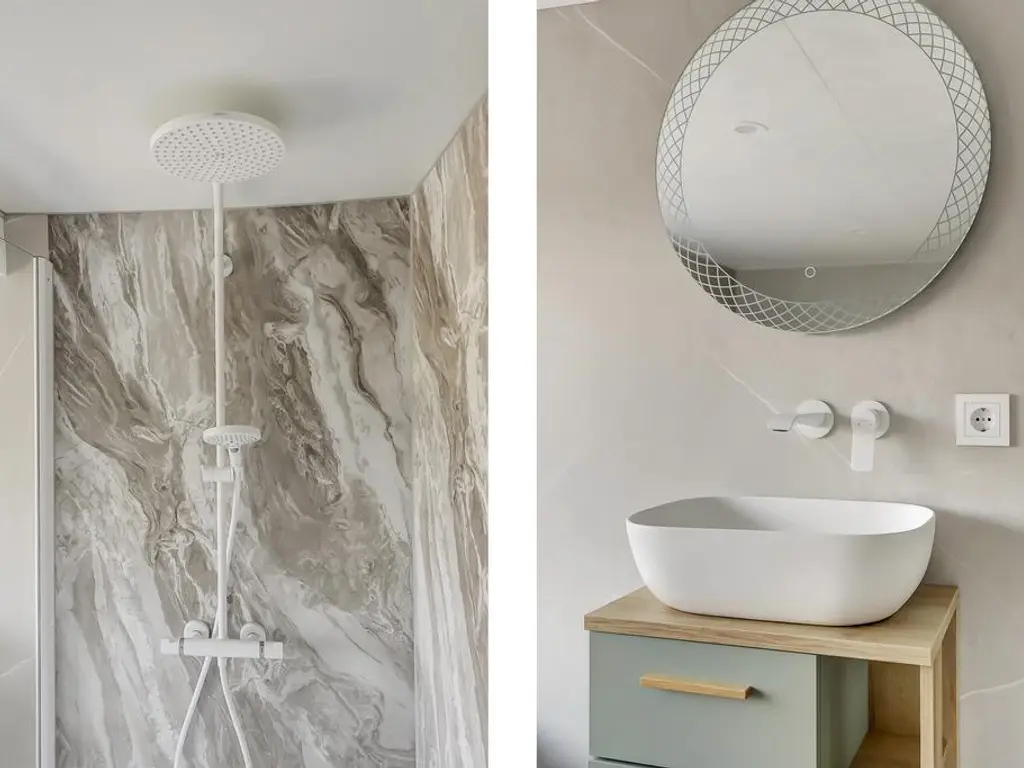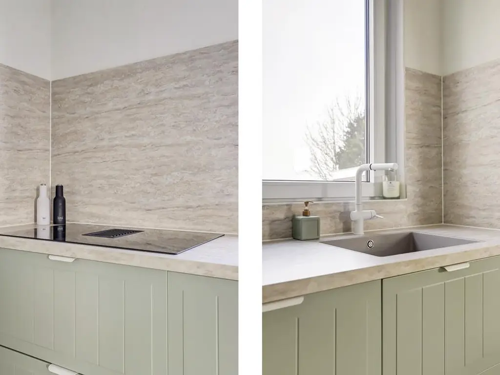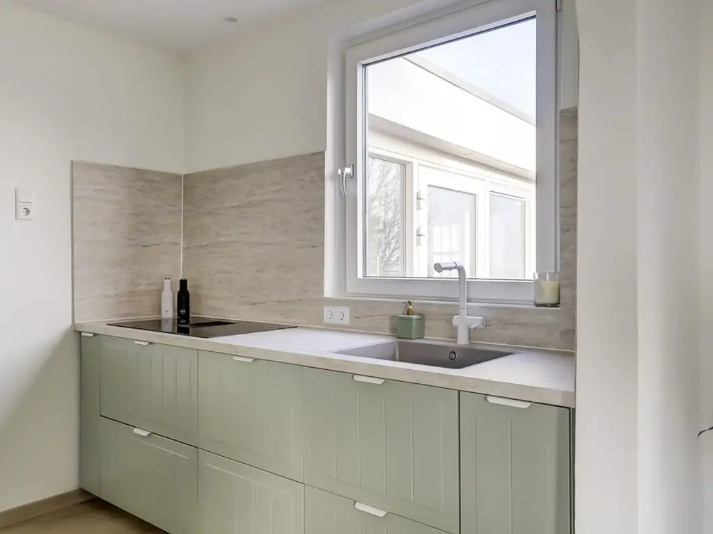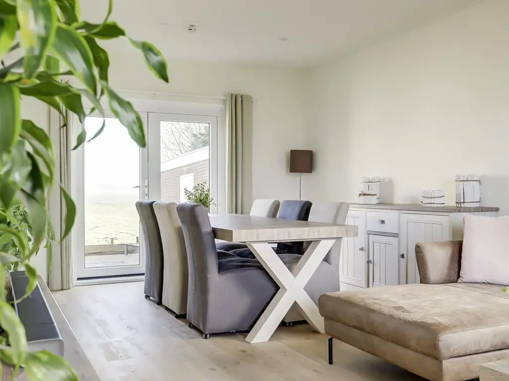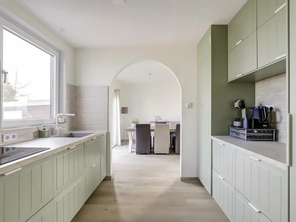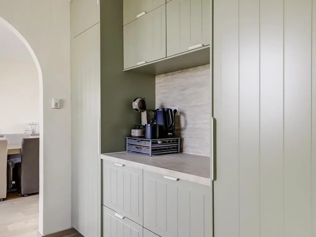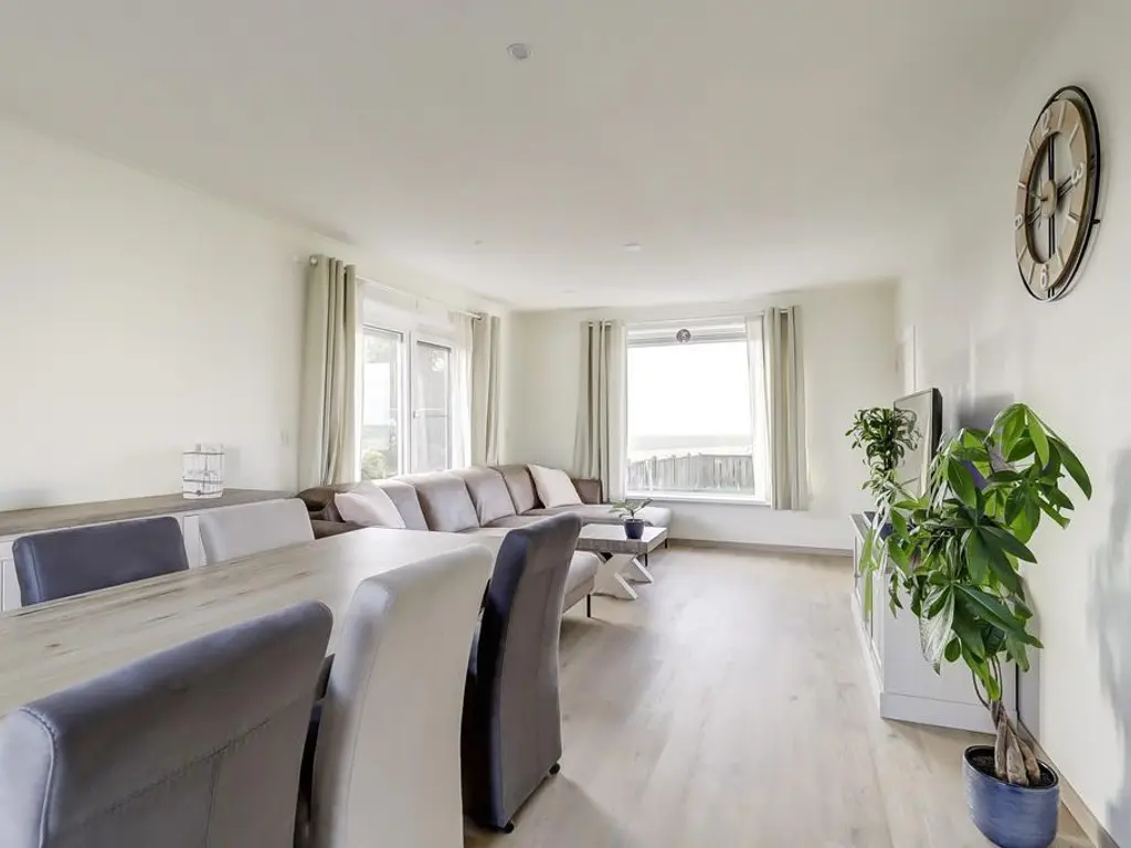 De royale woonkamer beschikt over grote raampartijen aan weerszijden, waardoor u optimaal kunt genieten van het prachtige polderlandschap. De ruimte is voorzien van een PVC vloer met vloerverwarming, strak afgewerkte wanden en openslaande deuren naar de riante tuin. De moderne open keuken (2024) biedt veel kastruimte dankzij de opstelling aan weerszijden en is uitgerust met luxe inbouwapparatuur waaronder een inductie kookplaat met geintegreegde afzuiging, vaatwasser, vriezer en koelkast.