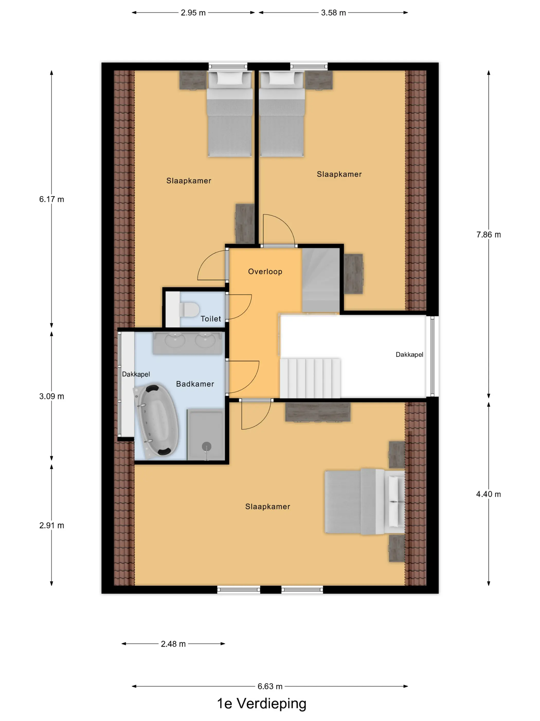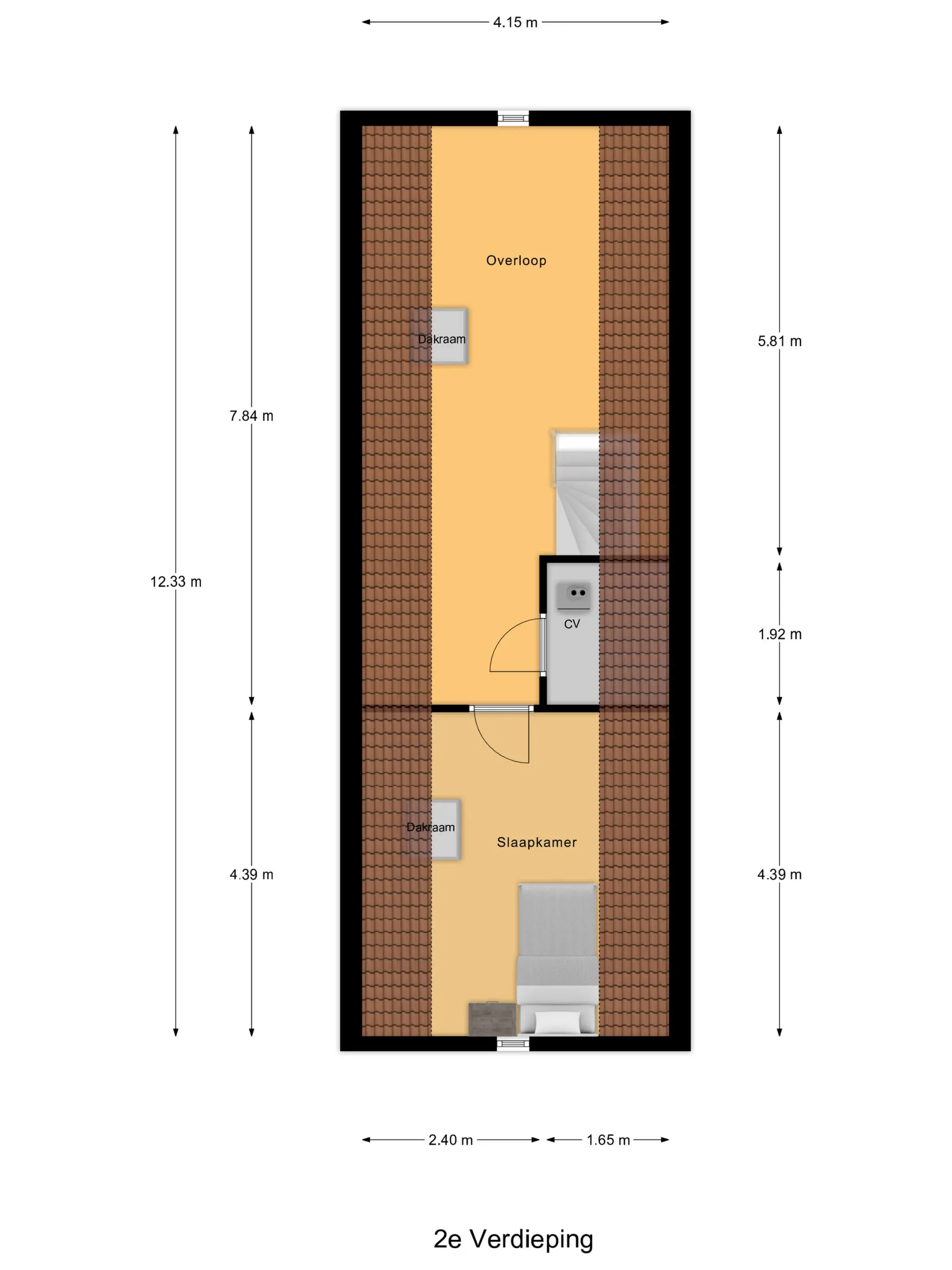Ruime zolderverdieping met slaapkamer aan de voorzijde en mogelijkheid voor een 5e slaapkamer aan de achterzijde.