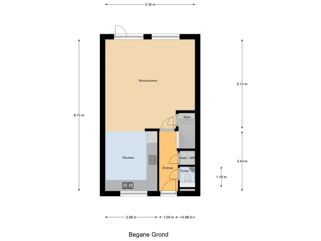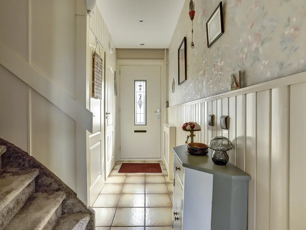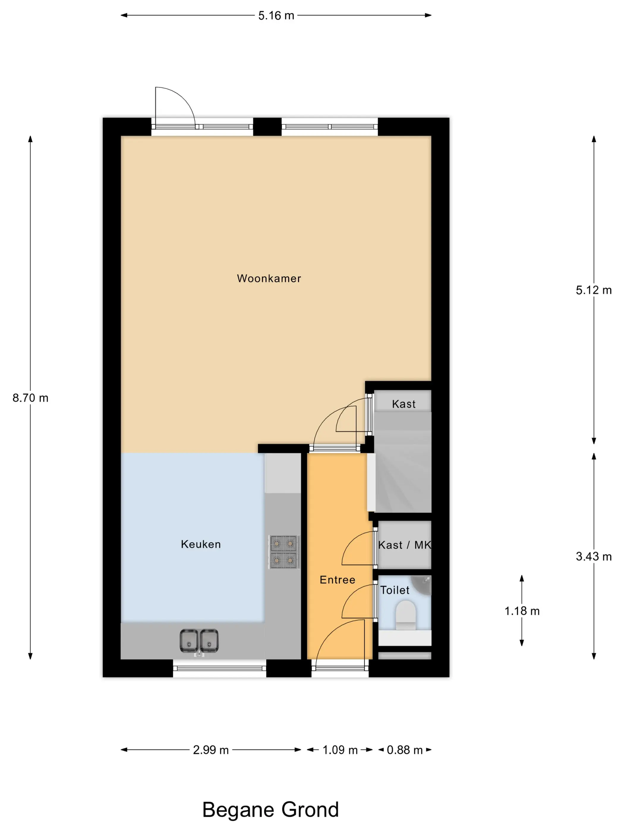 Begane grond: Entree/hal, meterkast, modern toilet met fonteintje en trapopgang naar de 1e verdieping. De ruime tuingerichte woonkamer (ca. 26m2) welke is v.v. een tegelvloer en deur naar de achtertuin en met een fantastisch vrij uitzicht over de polder. De keuken is aan de voorzijde gesitueerd en heeft een hoekopstelling en beschikt over diverse inbouwapparatuur. Diepe (ruim 13 meter) en zonnige achtertuin met zonneterras gelegen op het westen met prachtig vrijuitzicht over polder.