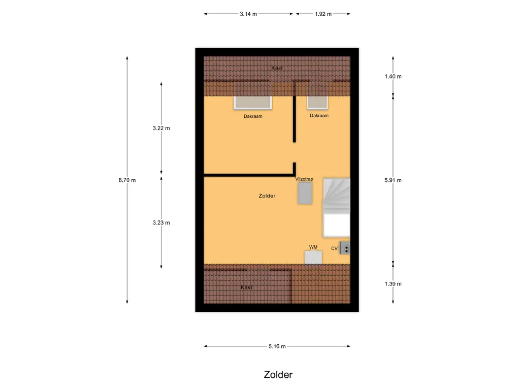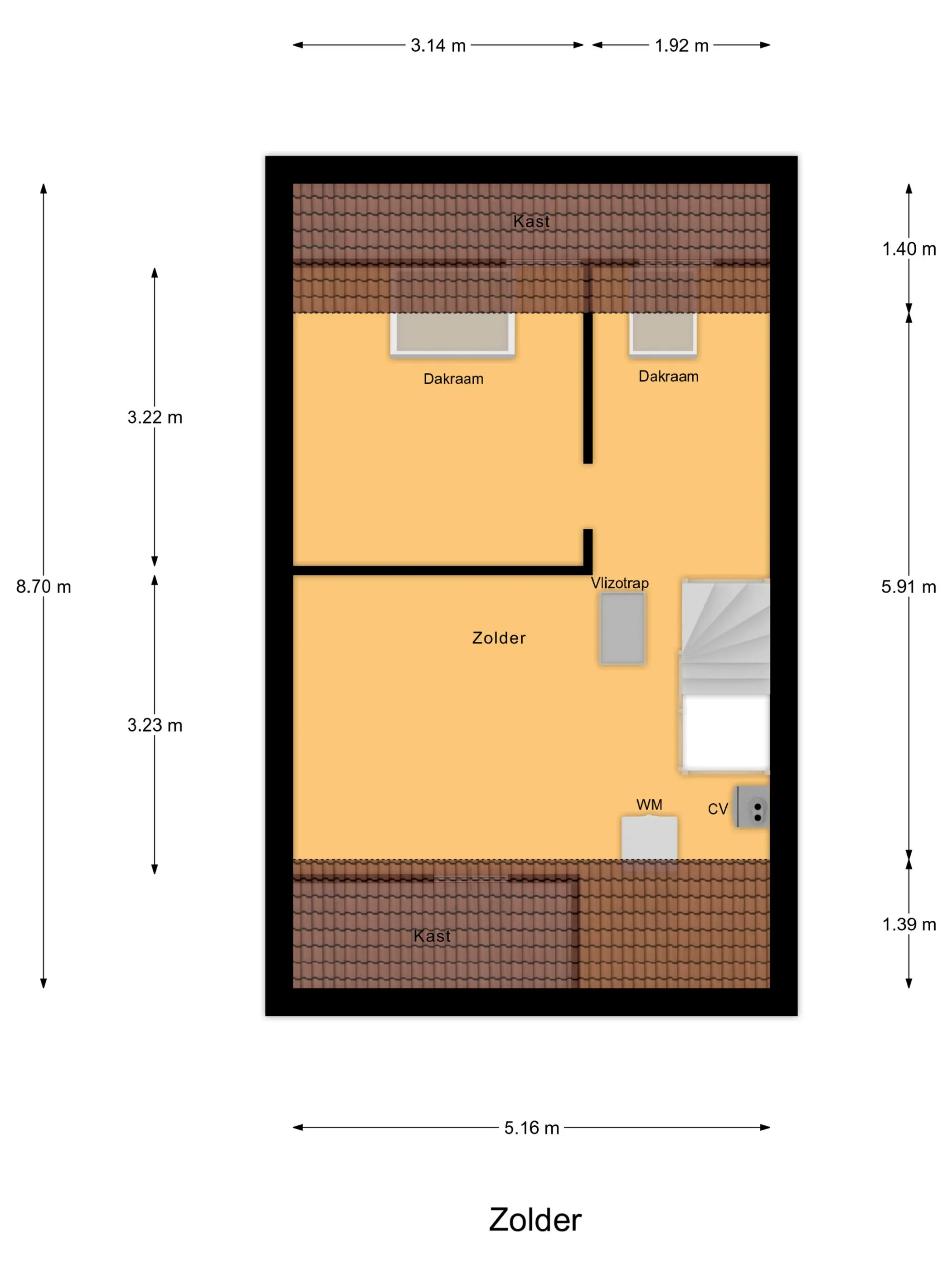 2e Verdieping: De grote zolder is vrij in te delen en heeft de mogelijkheid om 2 slaapkamers te creëren. Opstelling CV Ketel, MV Box en aansluiting wasmachine en droger. Aparte kamer met dakraam.