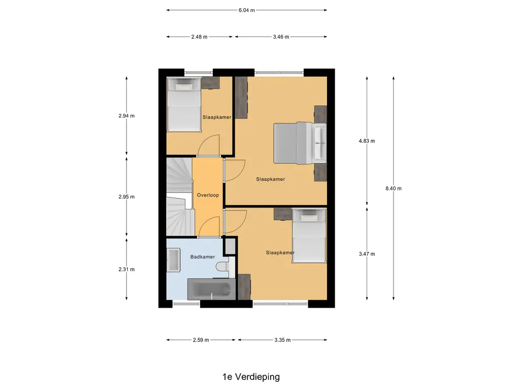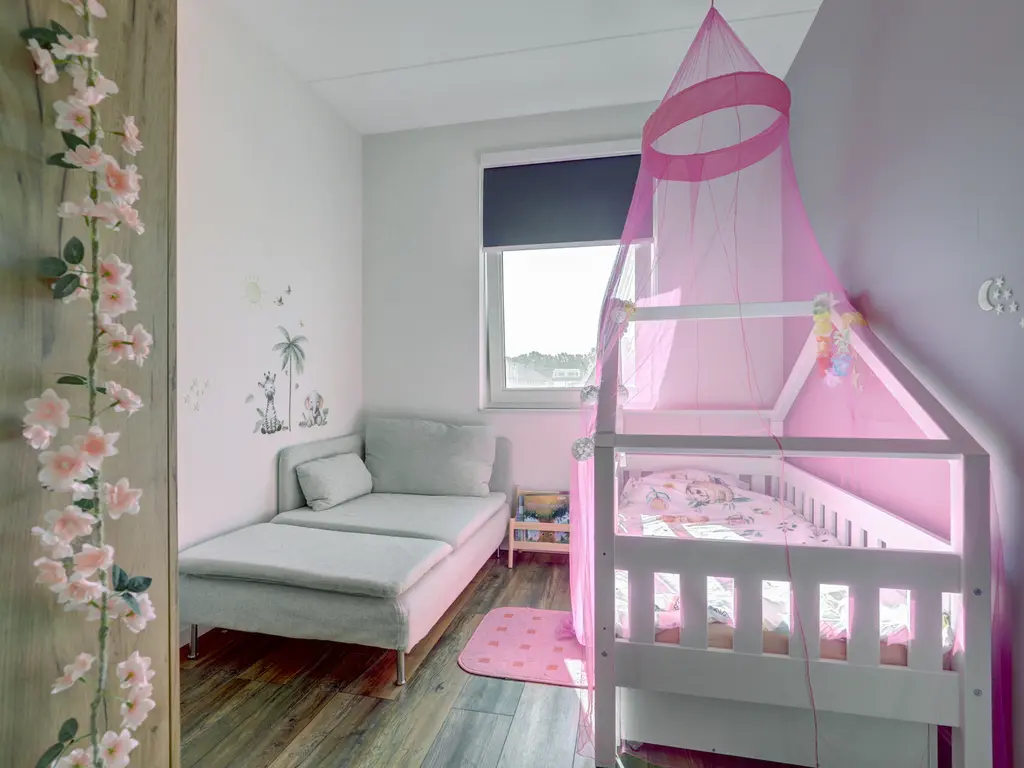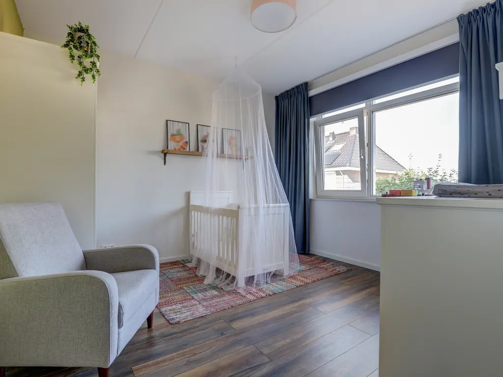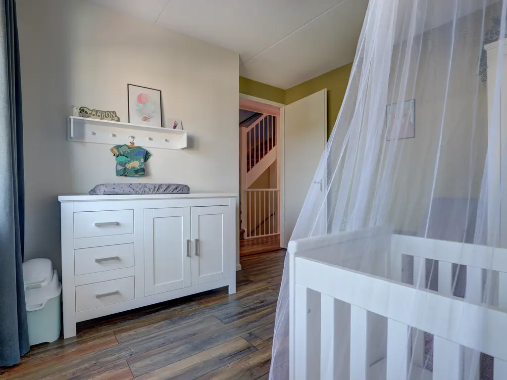 Drie ruime slaapkamers, allemaal voorzien van laminaatvloeren en vloerverwarming. Moderne badkamer (2017) met douche/ligbad, hangend toilet, stijlvol wastafelmeubel en een elektrische designradiator.
