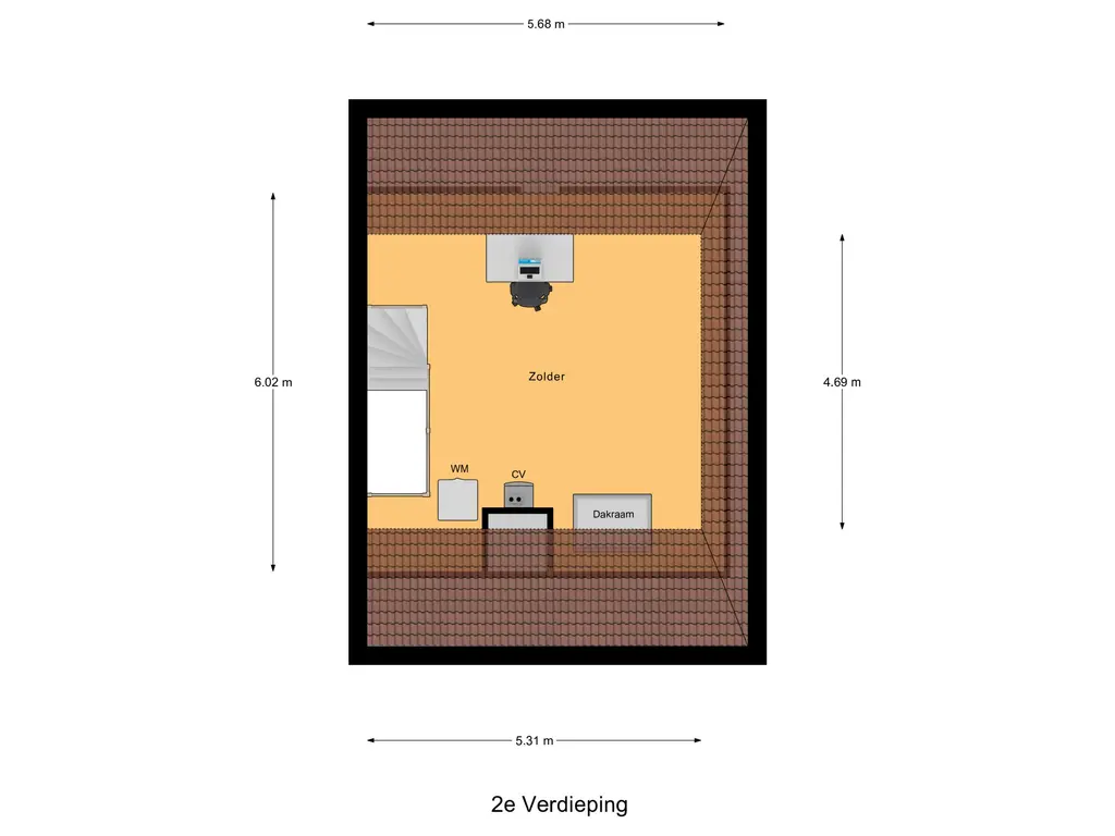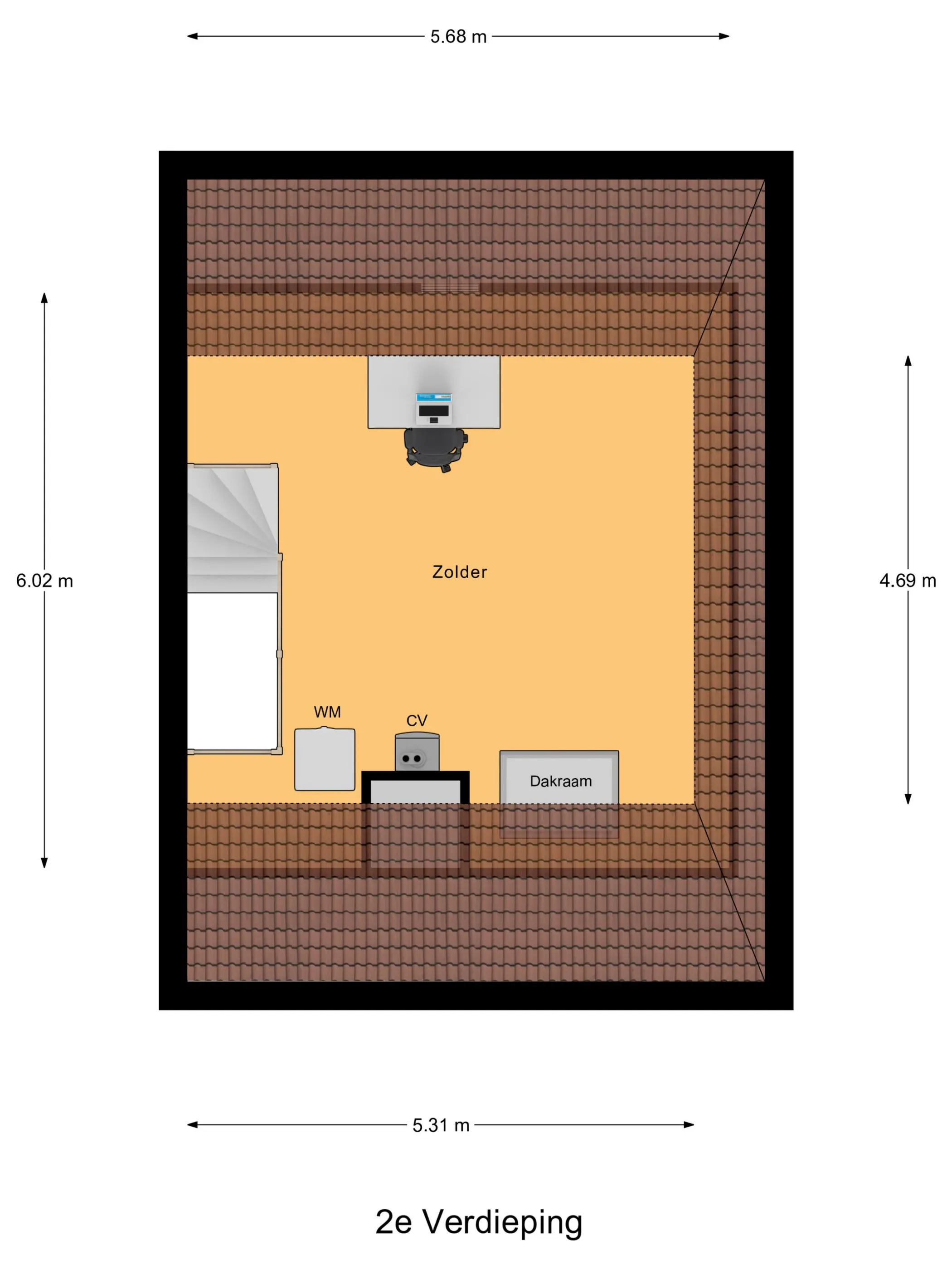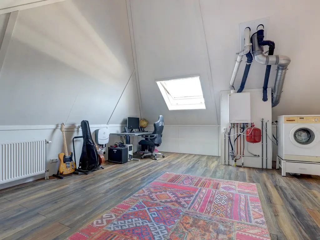 Veelzijdige zolderkamer Volledig afgewerkte zolder met dakraam, opstelplaats voor wasmachine, HR-combiketel en mechanische ventilatie – perfect als extra slaapkamer, werkruimte of hobbykamer.