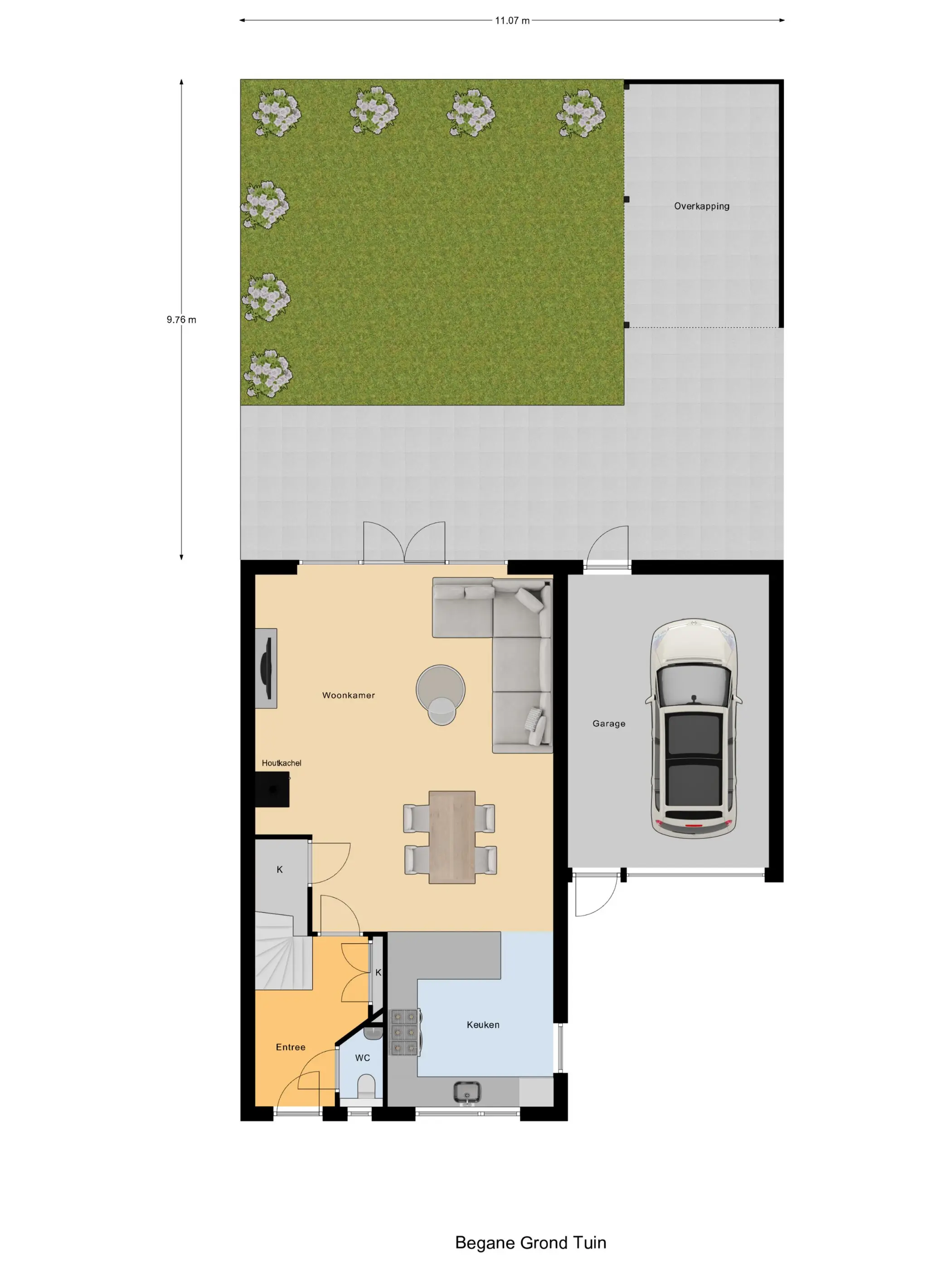 ? Garage, oprit én zonnige tuin