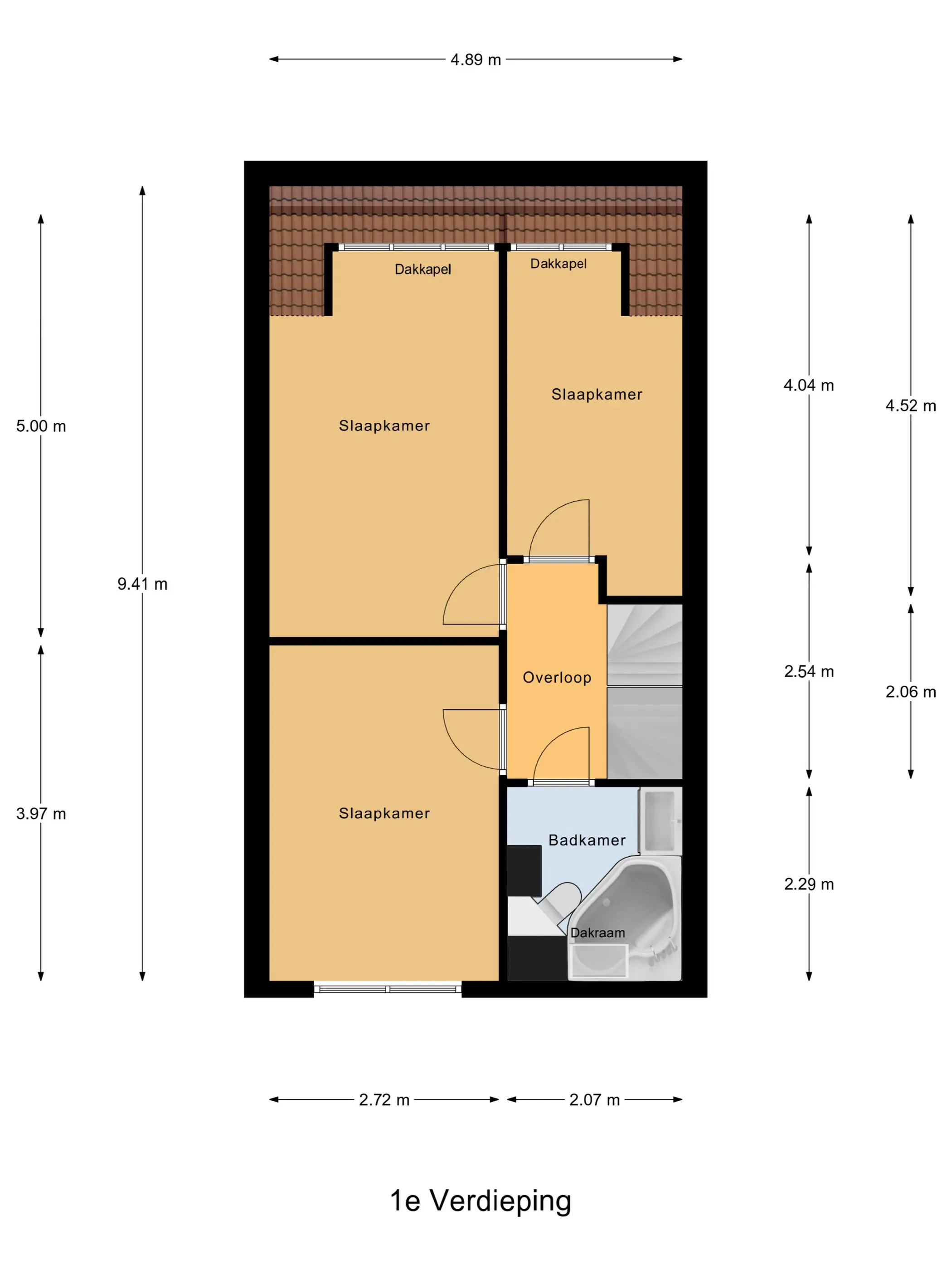 1e Verdieping: De overloop biedt toegang tot drie ruime slaapkamers. De slaapkamers aan de achterzijde beschikken over een kunststof dakkapel met elektrisch rolluik. De moderne badkamer is uitgerust met een whirlpool hoekbad, wastafelmeubel en een tweede zwevend toilet.