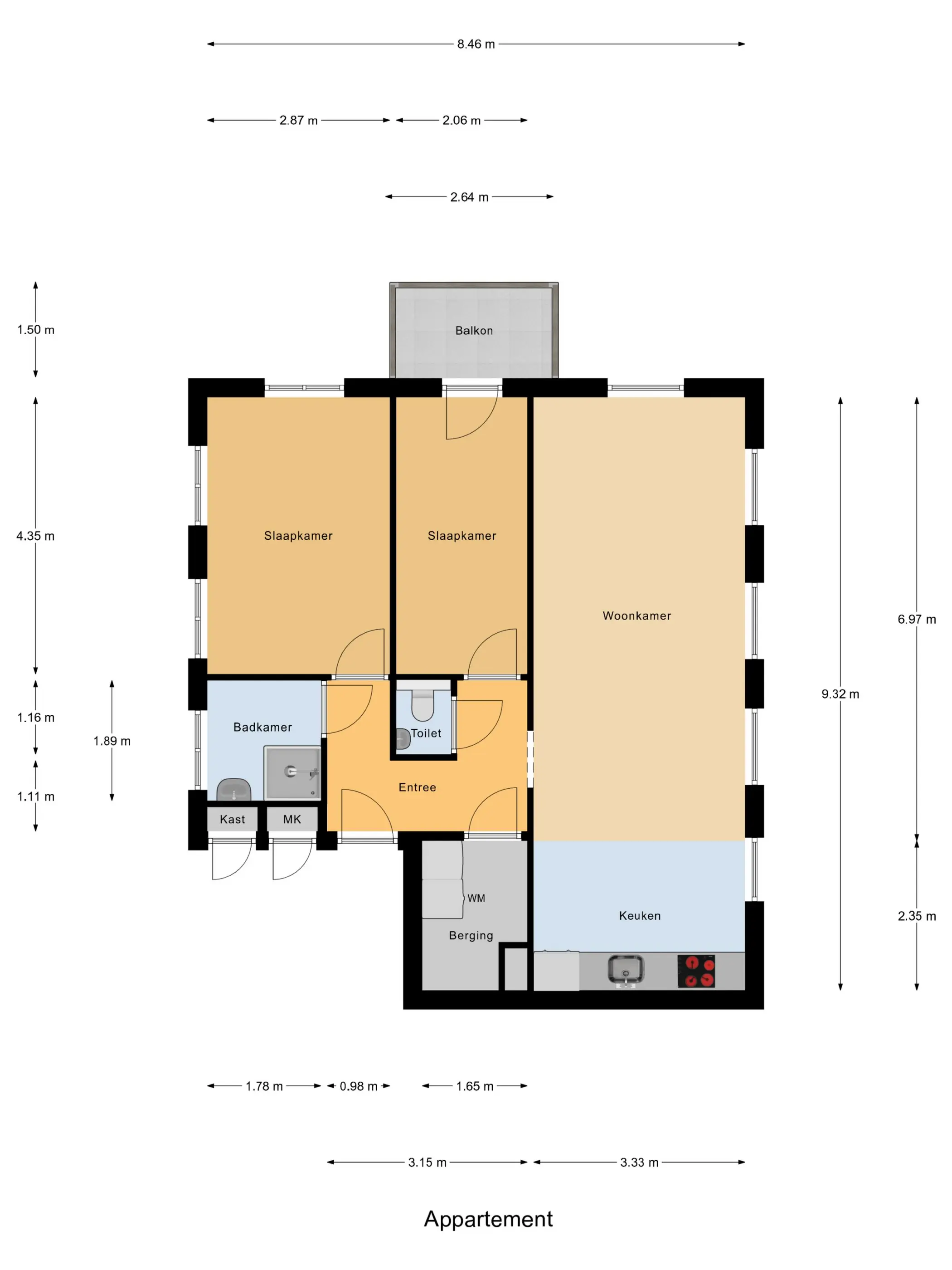 - 3 kamers (2 slaapkamers)