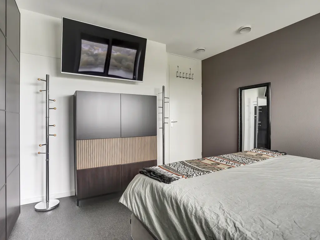 Het gehele appartement is voorzien van een antracietgrijze siergrindvloer met vloerverwarming én vloerkoeling, aangestuurd door de warmtepomp.