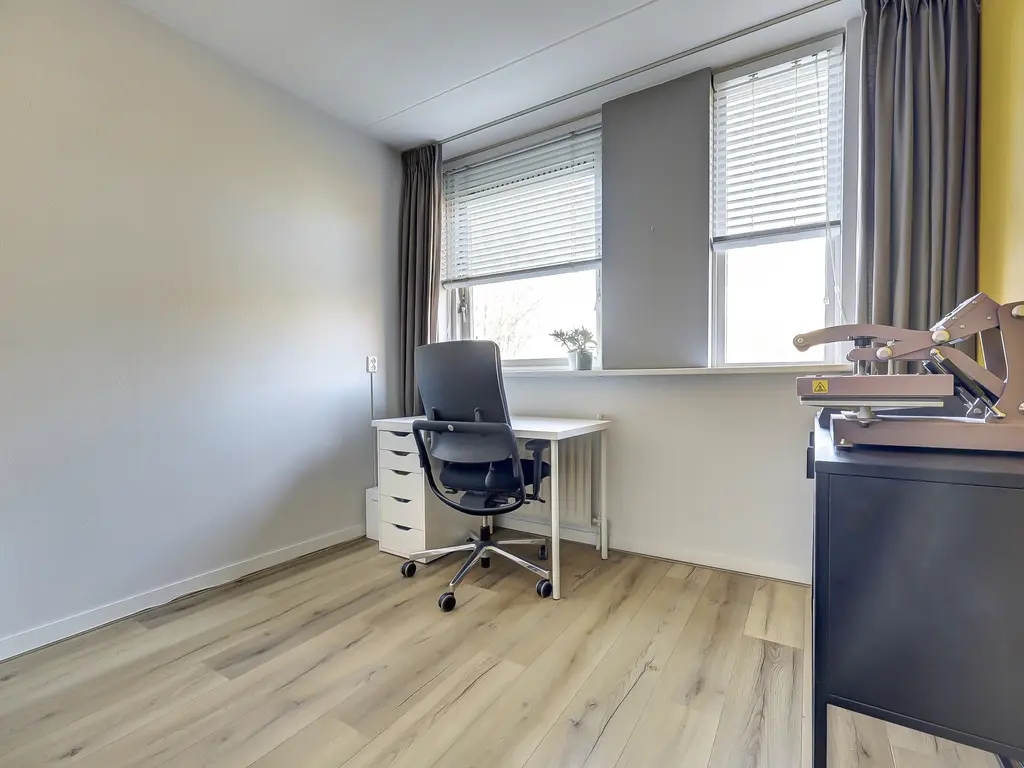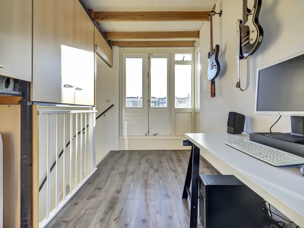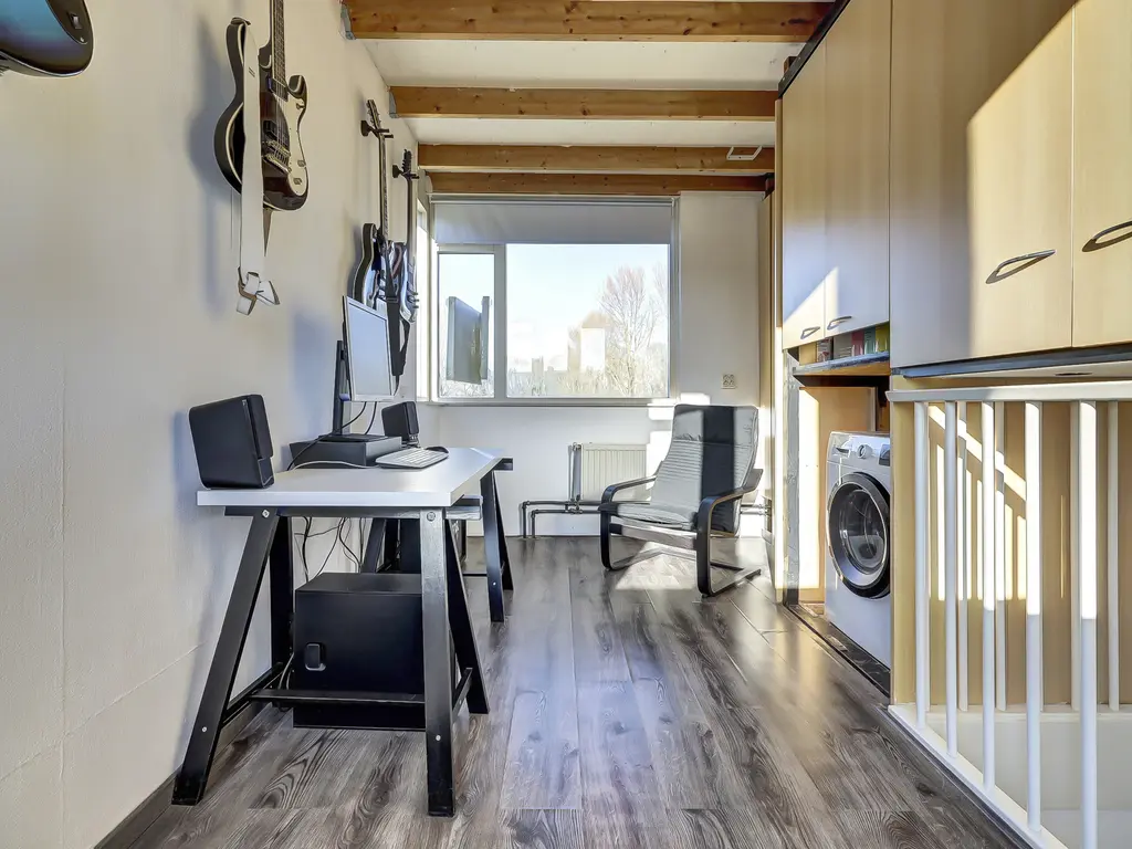 Tweede verdieping: Via een vaste trap bereik je de tweede verdieping, ingericht als studio met praktische opbergruimte en openslaande deuren naar een extra buitenruimte met volop potentie voor bijvoorbeeld het maken van een dakterras of het plaatsen van zonnepanelen. Op deze verdieping bevinden zich tevens de opstelplaats van de cv-ketel (Remeha 2021) en de wasmachine-aansluiting.