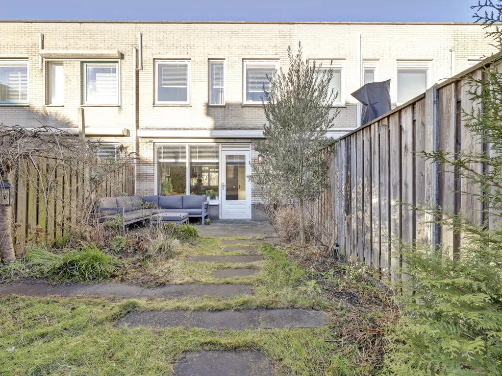De tuin op het zuiden is een fijne groene plek om te ontspannen. In de lente en zomer staat de tuin volop in bloei met diverse planten en bloemen. De tuin beschikt over een stenen berging en een achterom.