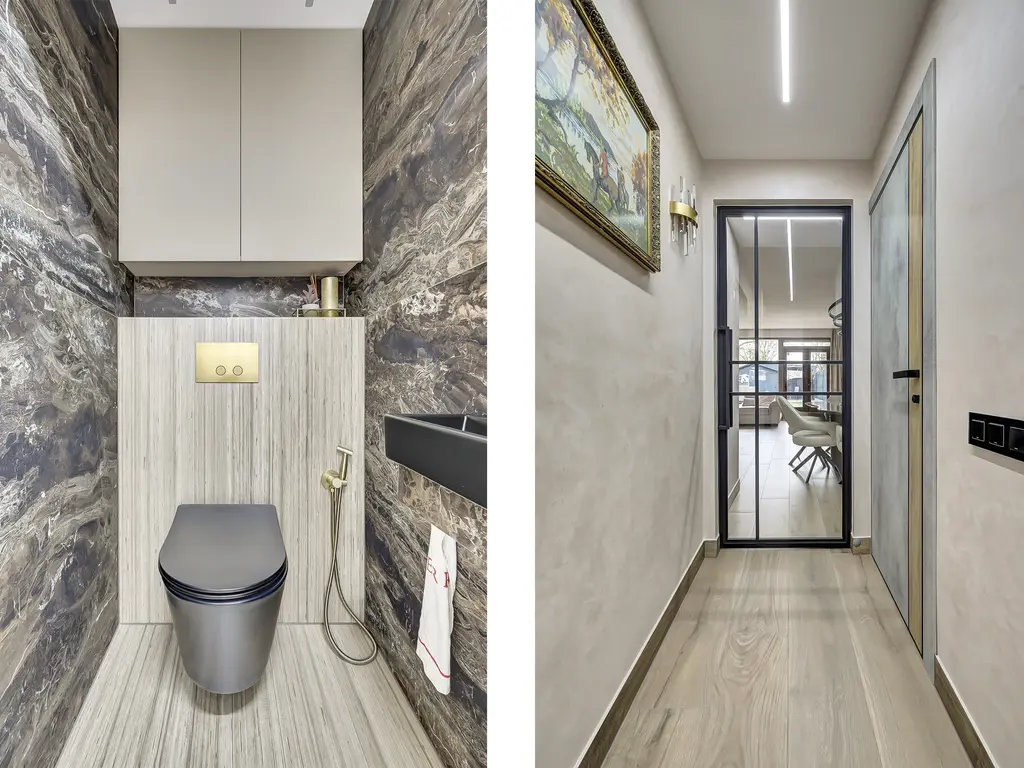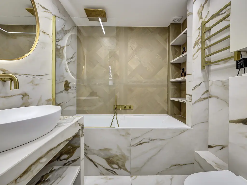 De luxe badkamer (2024) is volledig betegeld en voorzien van een ligbad met regendouche, tweede toilet en wastafelmeubel. Alle water-, gas- en rioleringsleidingen zijn vernieuwd in 2024, evenals alle elektriciteit.