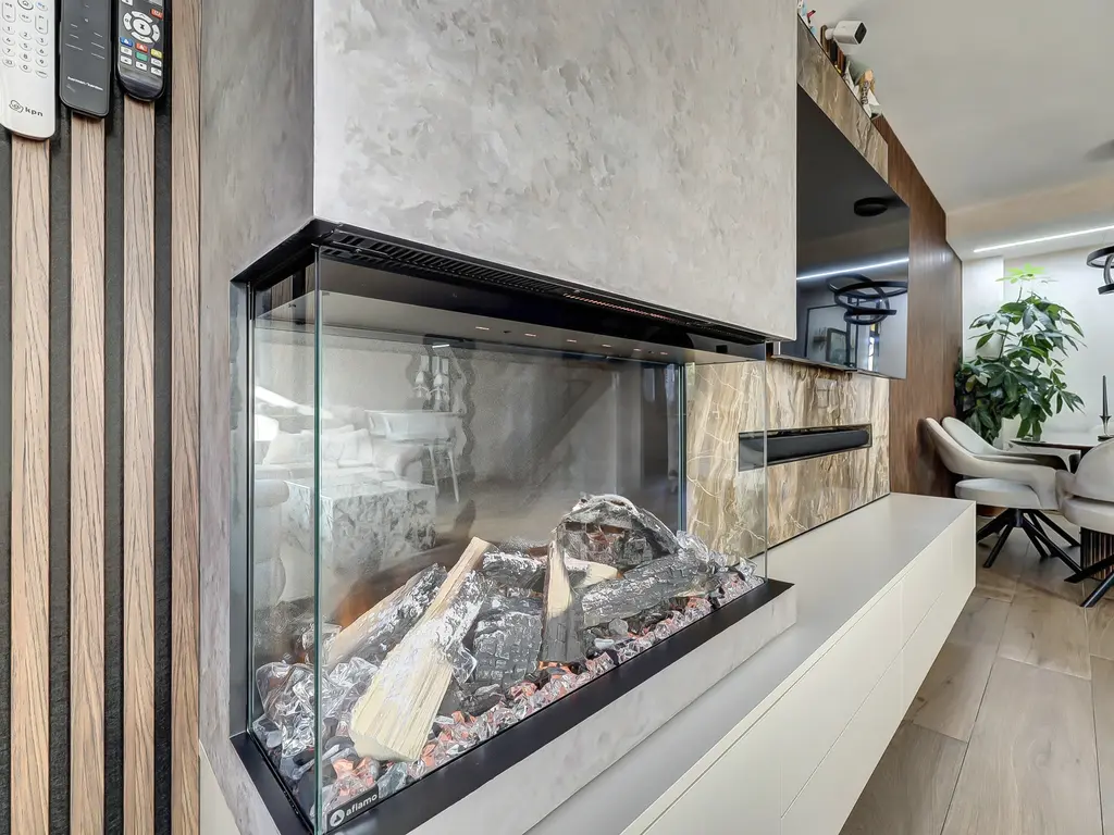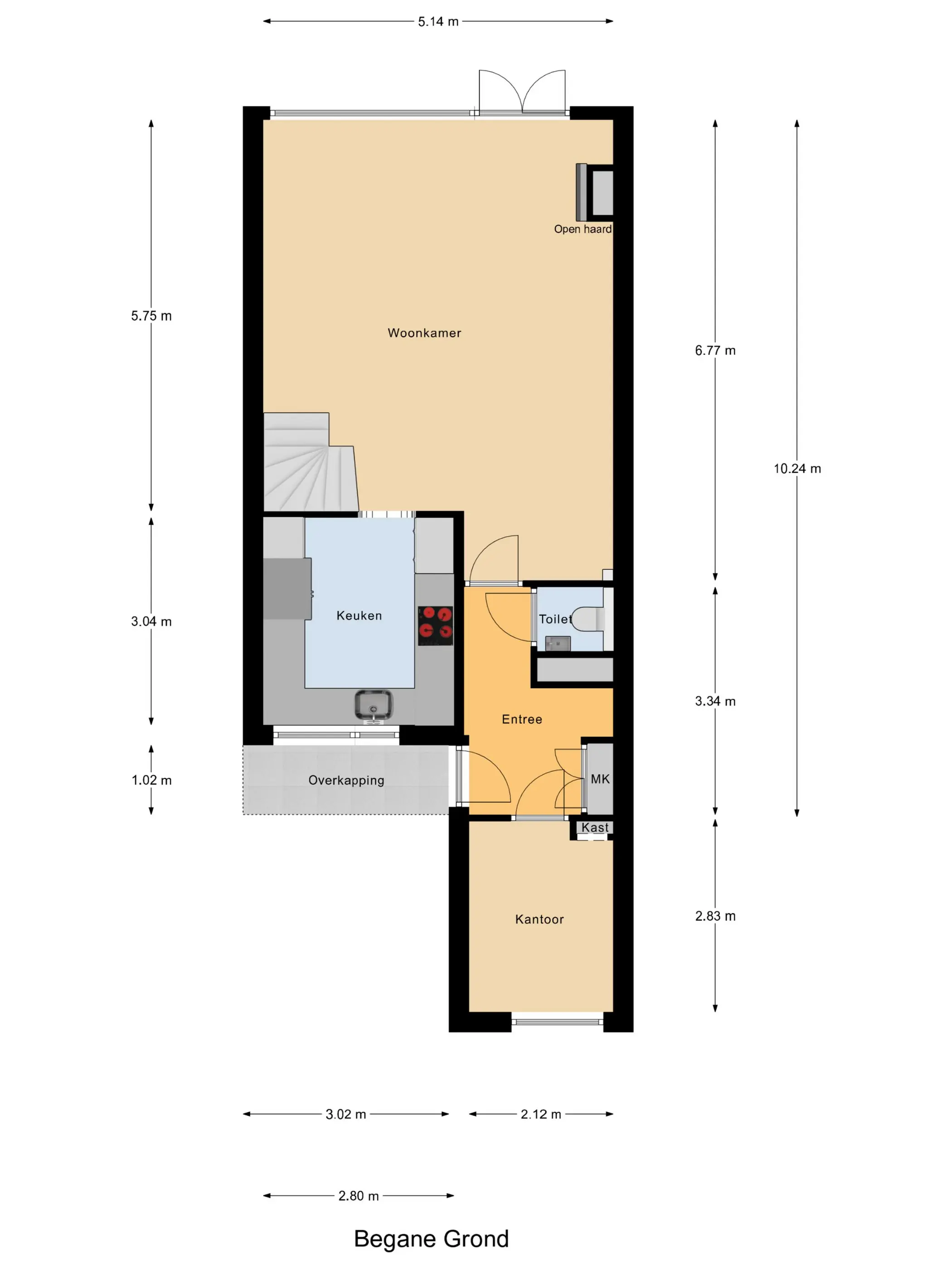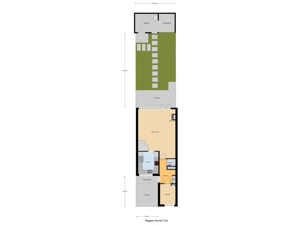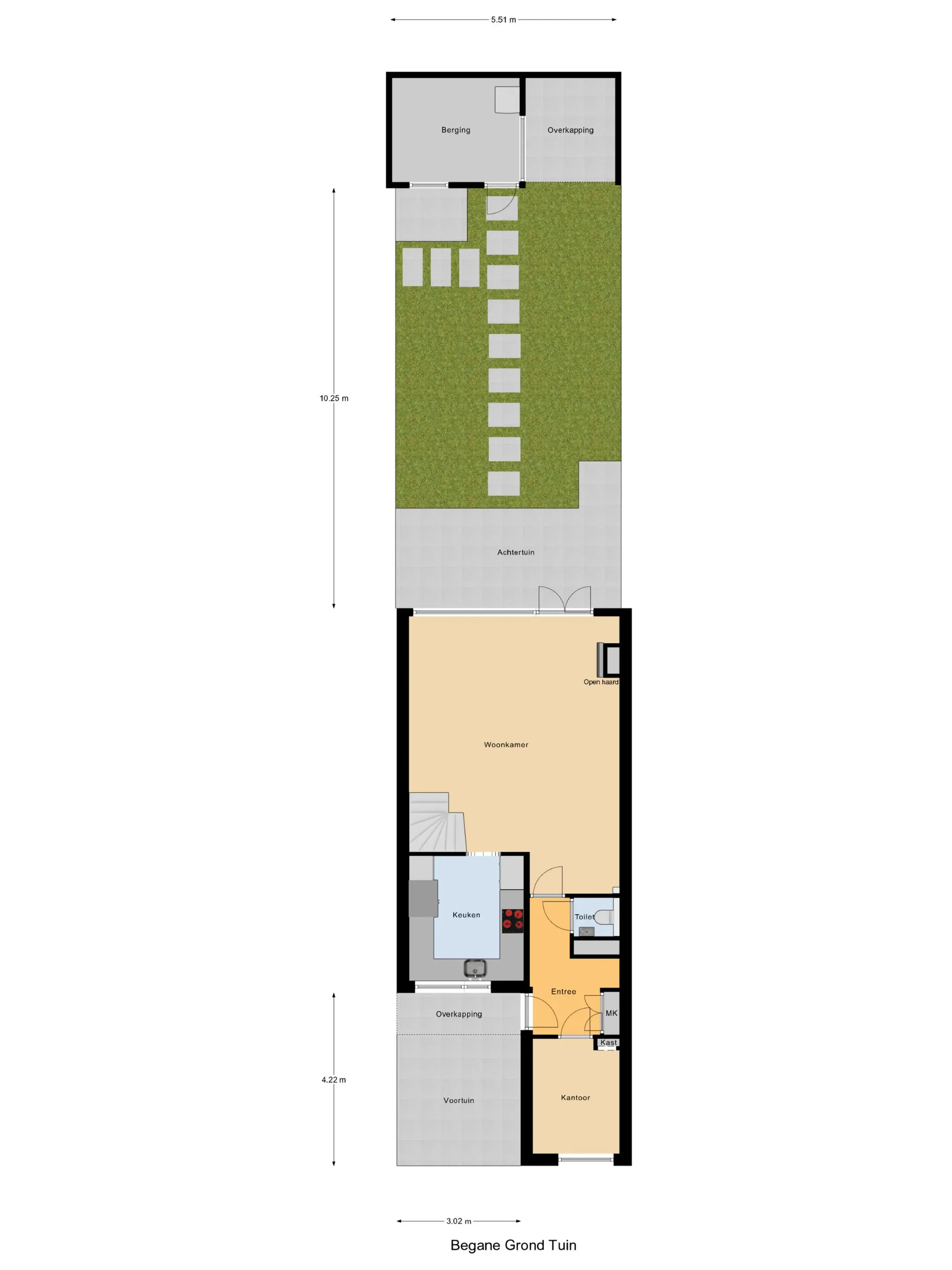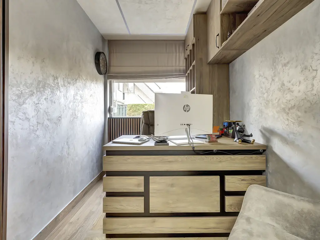 Begane grond: Via de entree/hal met vernieuwde meterkast (2024), vaste kast en modern zwevend toilet (natuursteen afwerking) bereik je de woning. Aan de voorzijde bevindt zich een volledig geïsoleerde werkkamer (voorheen berging) met maatwerk kastenwand – ideaal als thuiswerkplek of hobbyruimte. De sfeervolle woonkamer is strak afgewerkt met gladde wanden en plafonds, een fraai wandmeubel met haard en een mooie tegelvloer met vloerverwarming (2024). De openslaande deuren geven toegang tot de fraai aangelegde, gerenoveerde achtertuin met terras, houten berging, overkapping en achterom. Hier geniet je in alle rust van het vrije uitzicht op het groen. De voortuin is voorzien van een tegelvloer, wat een nette en onderhoudsvriendelijke uitstraling geeft.