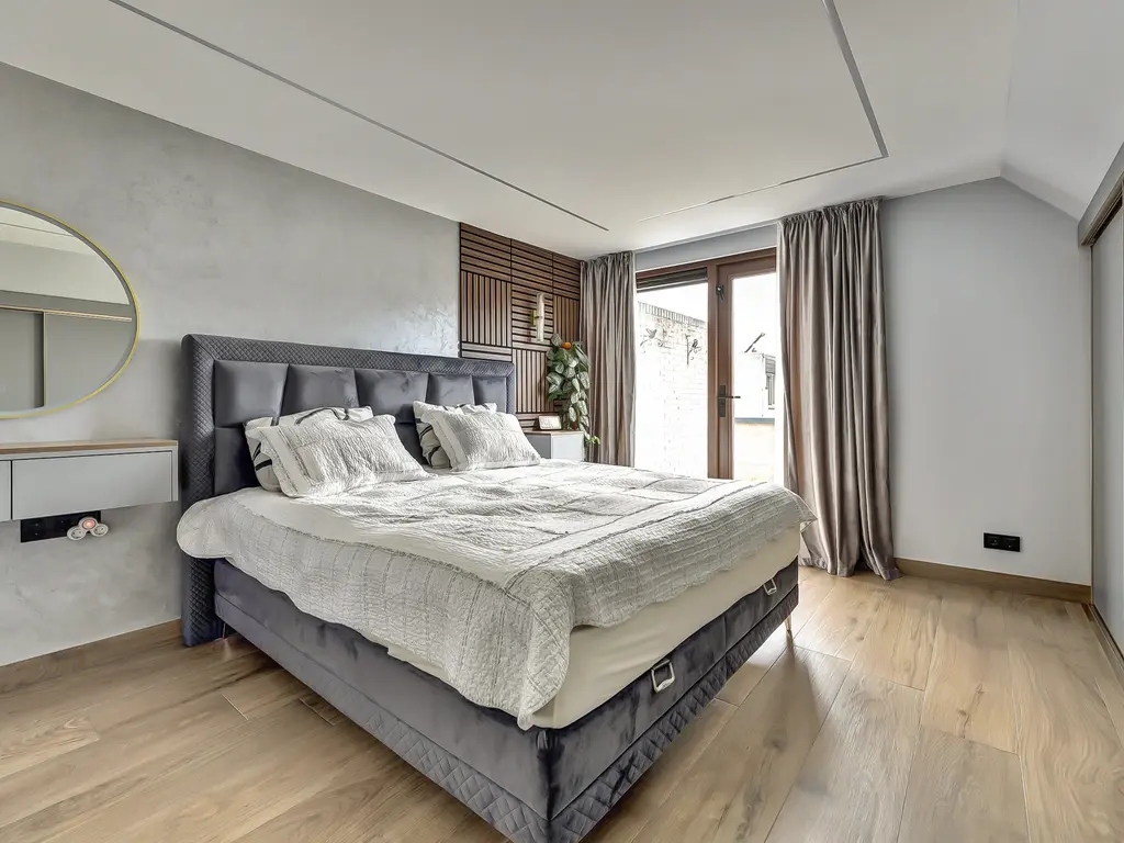 - De voorslaapkamer met toegang tot het zonnige dakterras (westen)