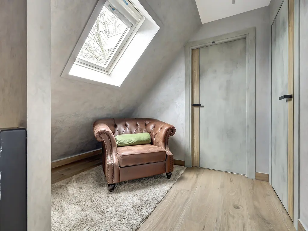 Eerste verdieping: De volledig vernieuwde verdieping beschikt over vloerverwarming (2024) en een moderne tegelvloer. Op de overloop met dakraam bevindt zich een aparte wasruimte met opstelling van de Cv-ketel (nieuw 2023). Er zijn twee ruime slaapkamers: