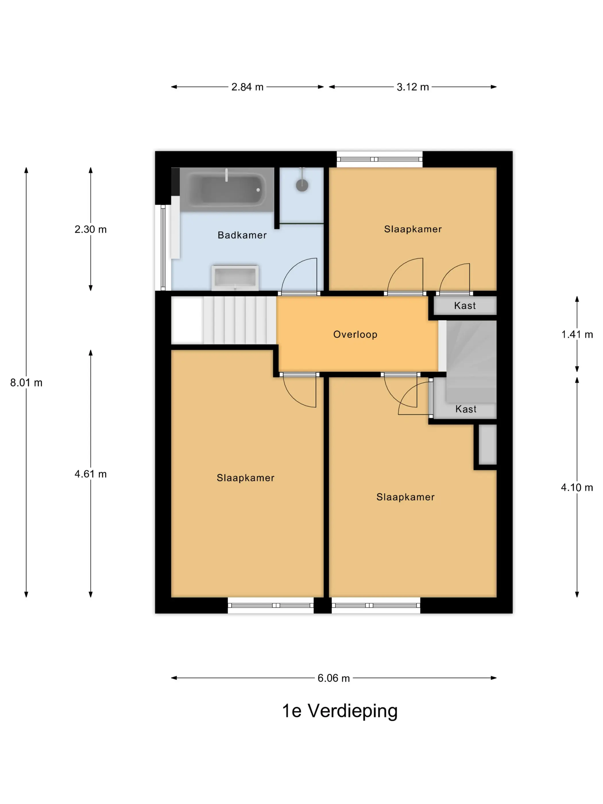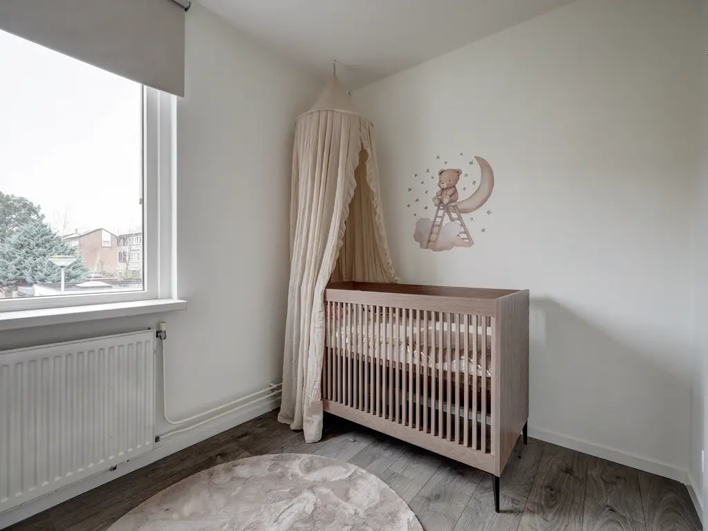 1e verdieping: Op de eerste verdieping kom je op de overloop die toegang geeft tot drie slaapkamers en de badkamer. Aan de achterzijde bevindt zich een ruime slaapkamer met vaste kastruimte, aan de voorzijde liggen twee fijne slaapkamers met veel lichtinval. De moderne, volledig betegelde badkamer is compleet uitgevoerd met een ligbad, instapdouche, een dubbel wastafelmeubel, een tweede toilet en vloerverwarming. Een comfortabele en luxe ruimte waar de dag ontspannen begint en eindigt.