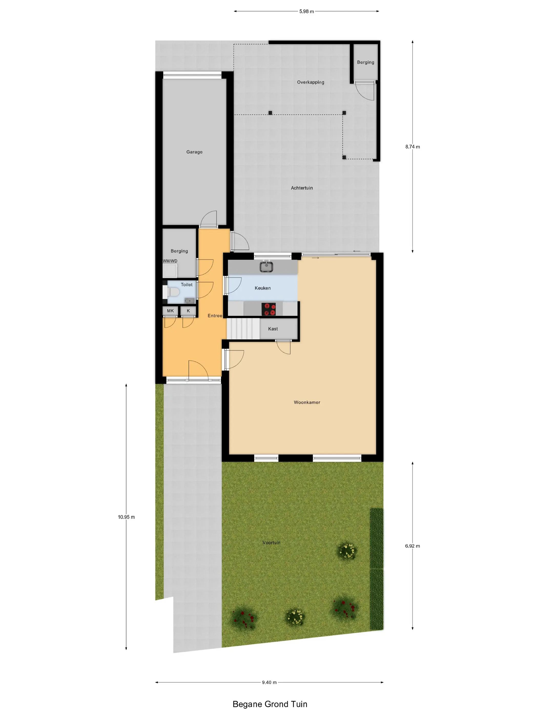 - Zonnige voor- en achtertuin