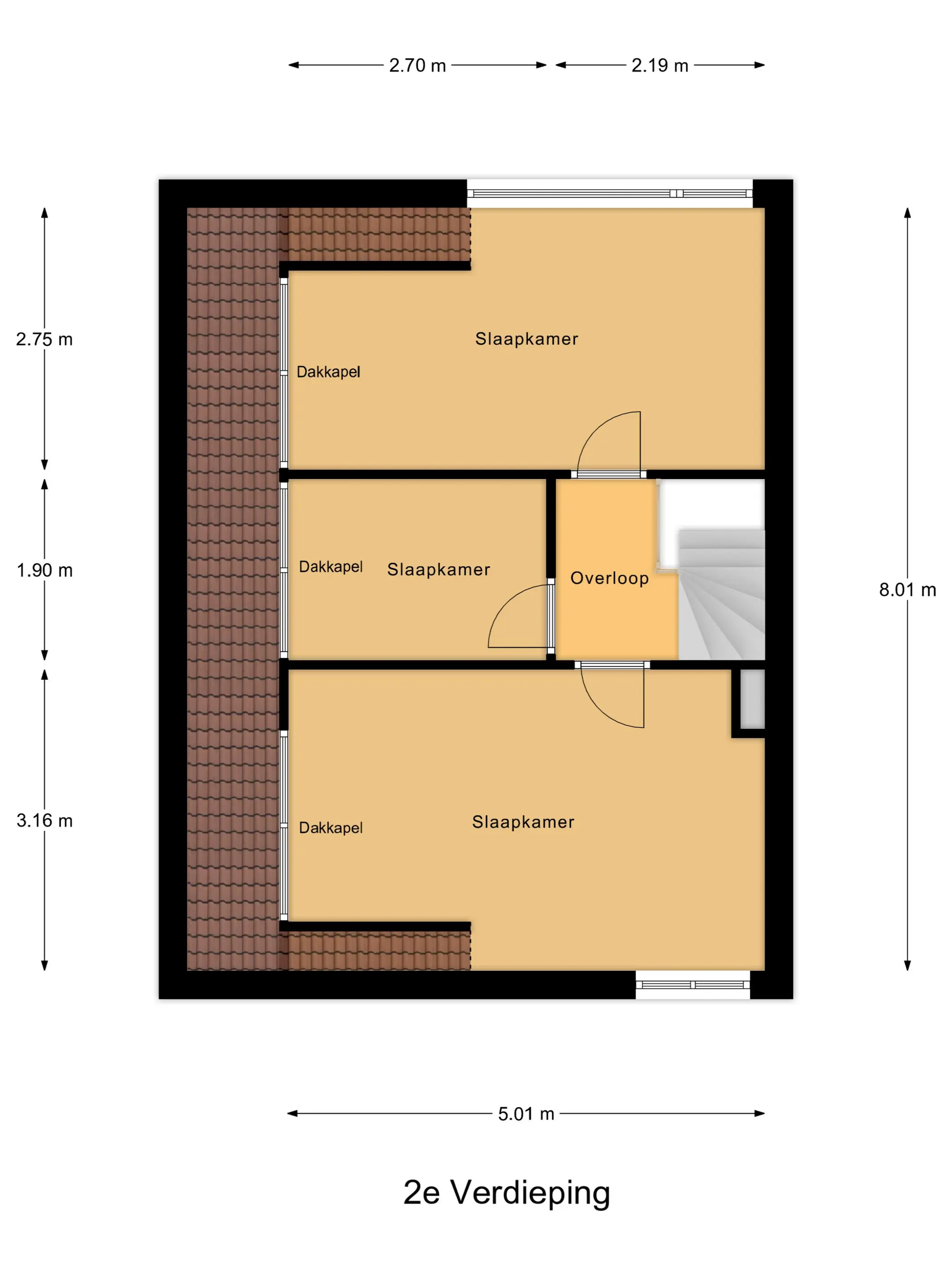 - Dakkapel over volle breedte op de 2e verdieping