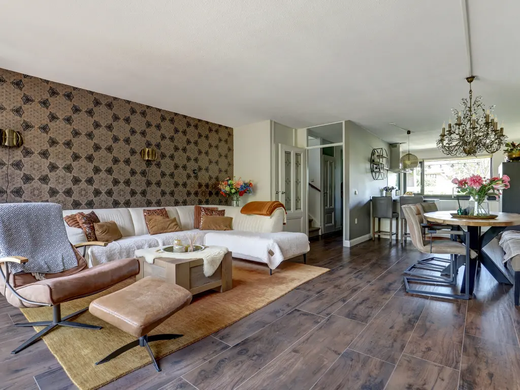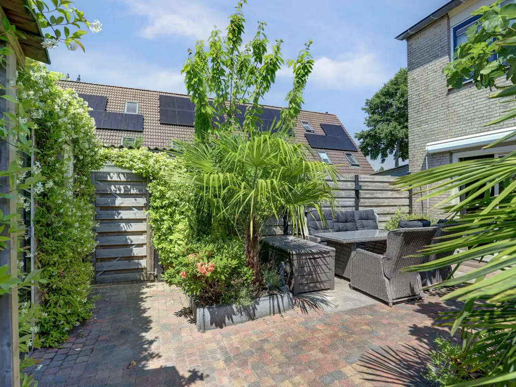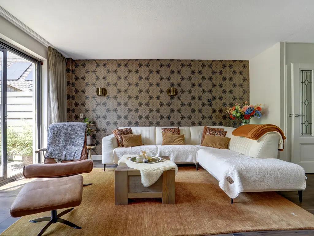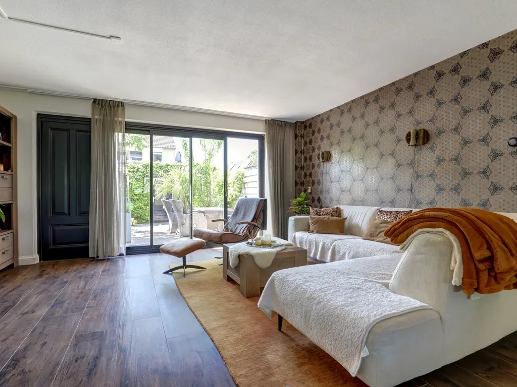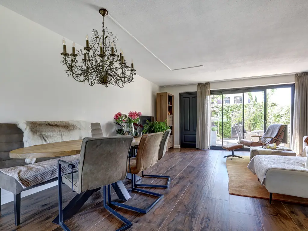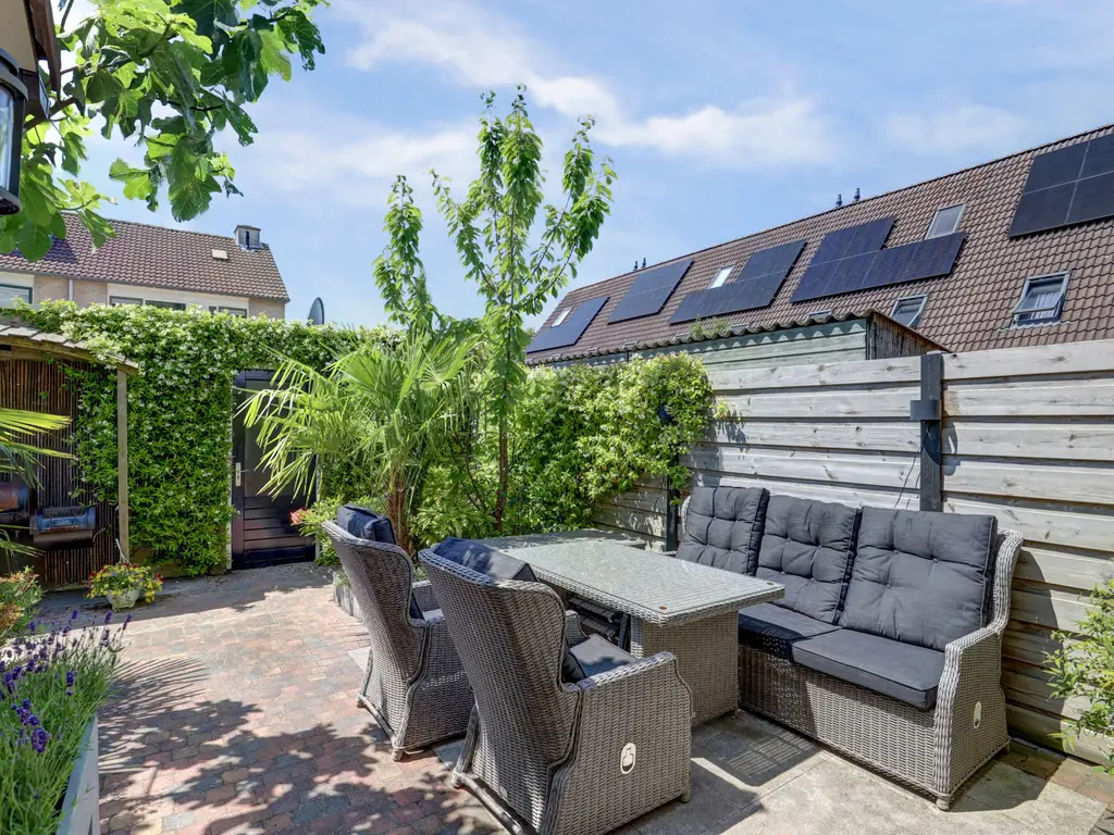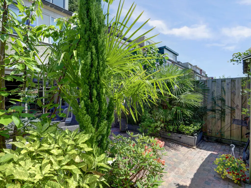 Je komt binnen via de hal met een moderne meterkast, strak toilet met fonteintje en trap naar boven. De lichte, tuingerichte woonkamer is sfeervol ingericht en voorzien van een aluminium schuifpui naar het terras en de zonnige achtertuin.