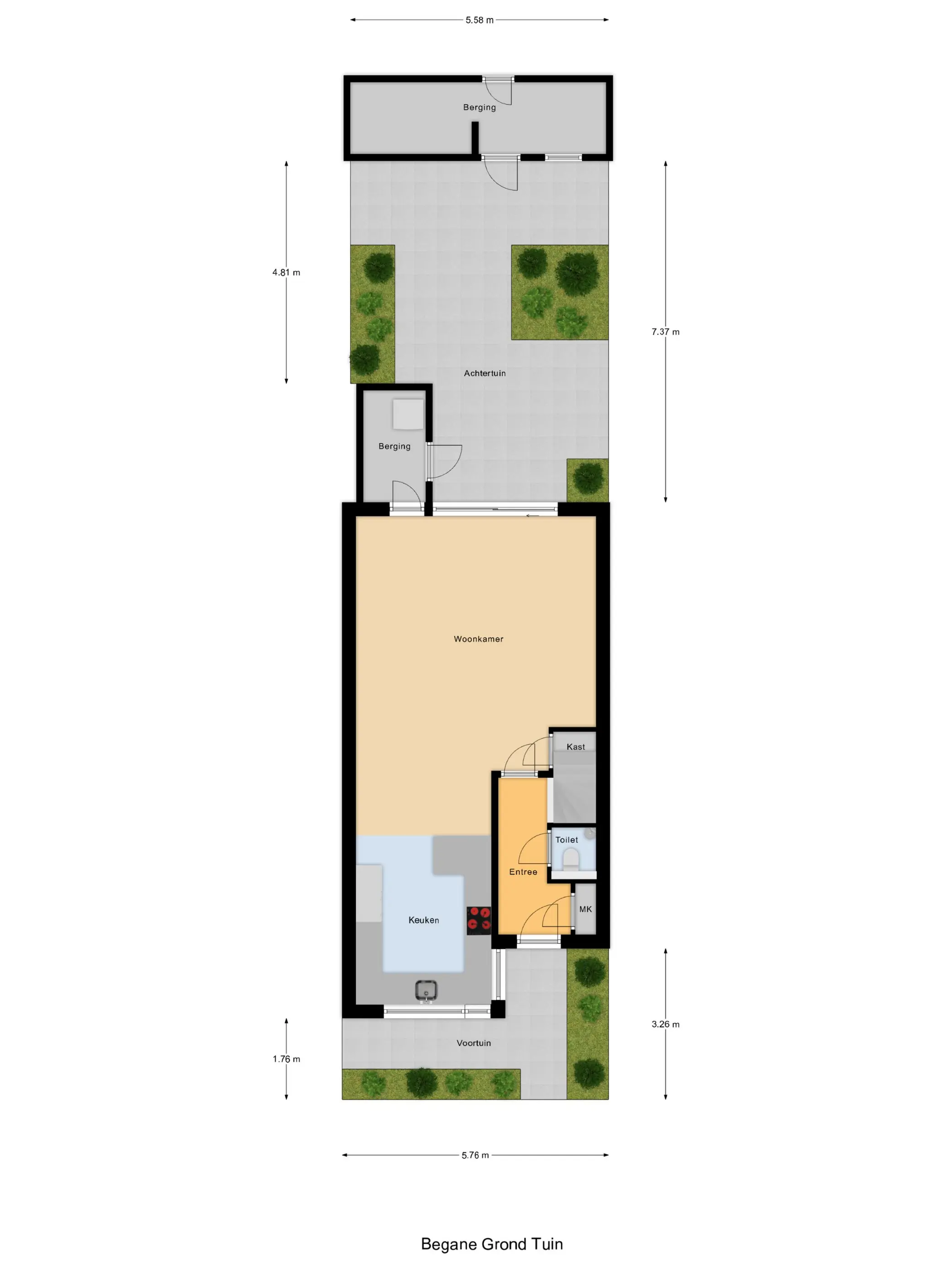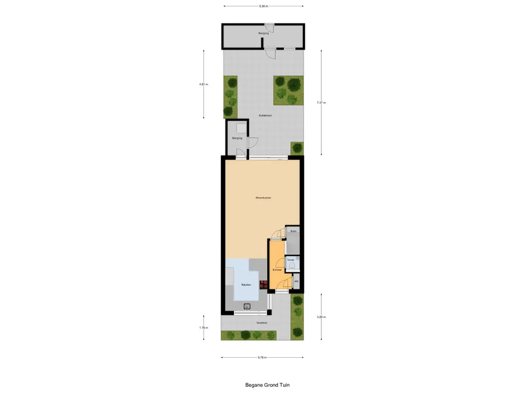 | Tuin | achtertuin met een oppervlakte van 50 m² en is gelegen op het zuidwesten |