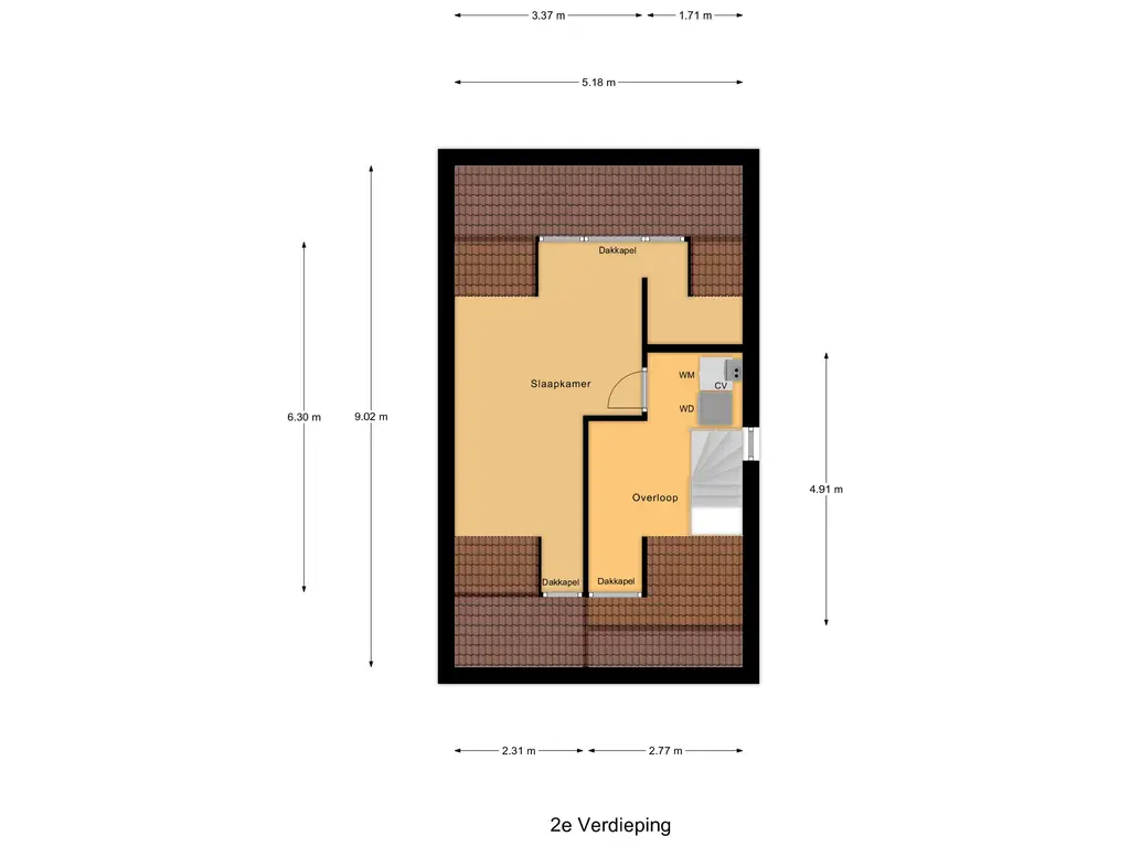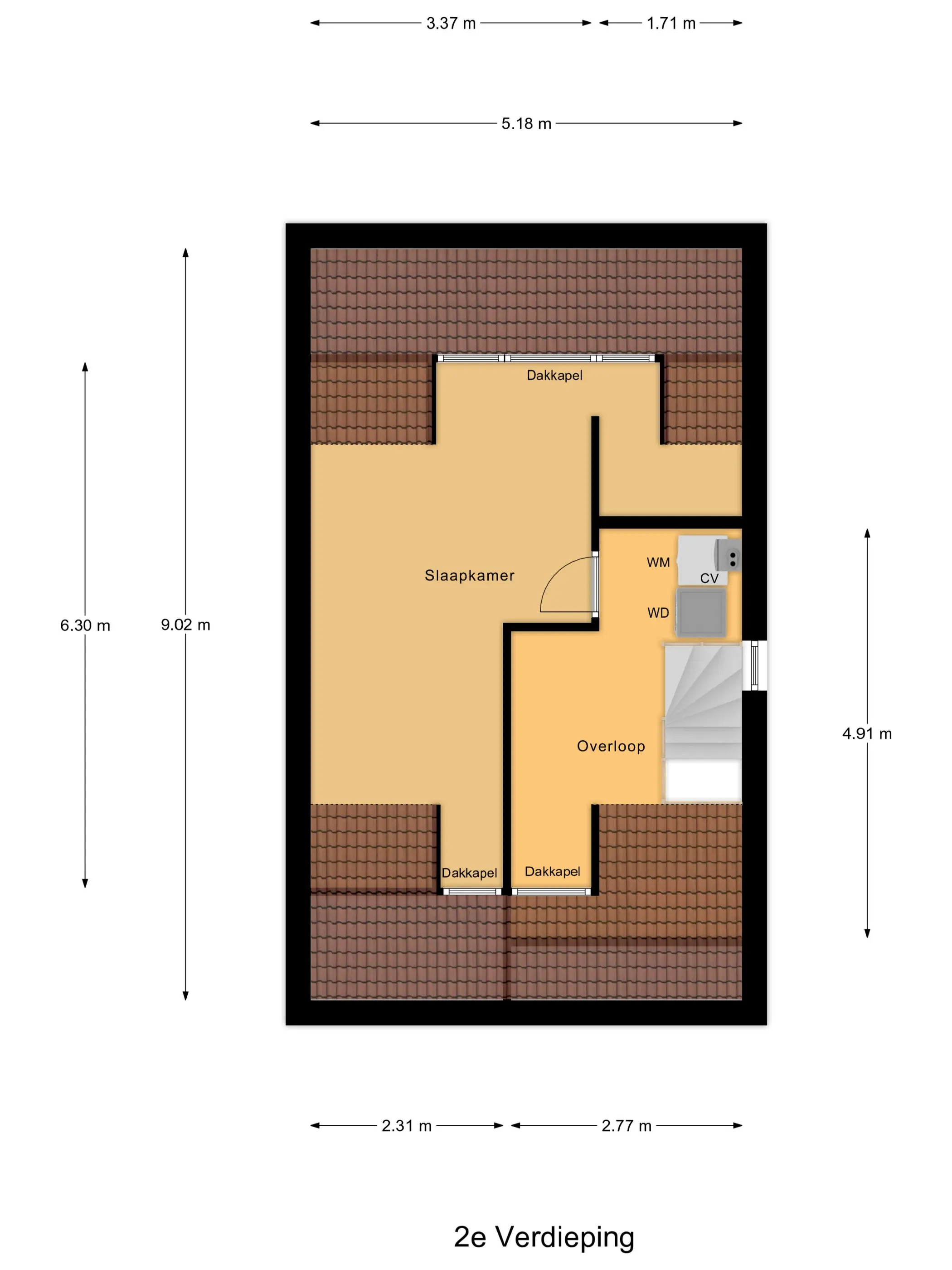 Ruime overloop met opstelplaats voor de CV-ketel (2015). Je vindt hier een verrassend ruime vierde slaapkamer met twee dakkapellen – veel licht en extra ruimte!
