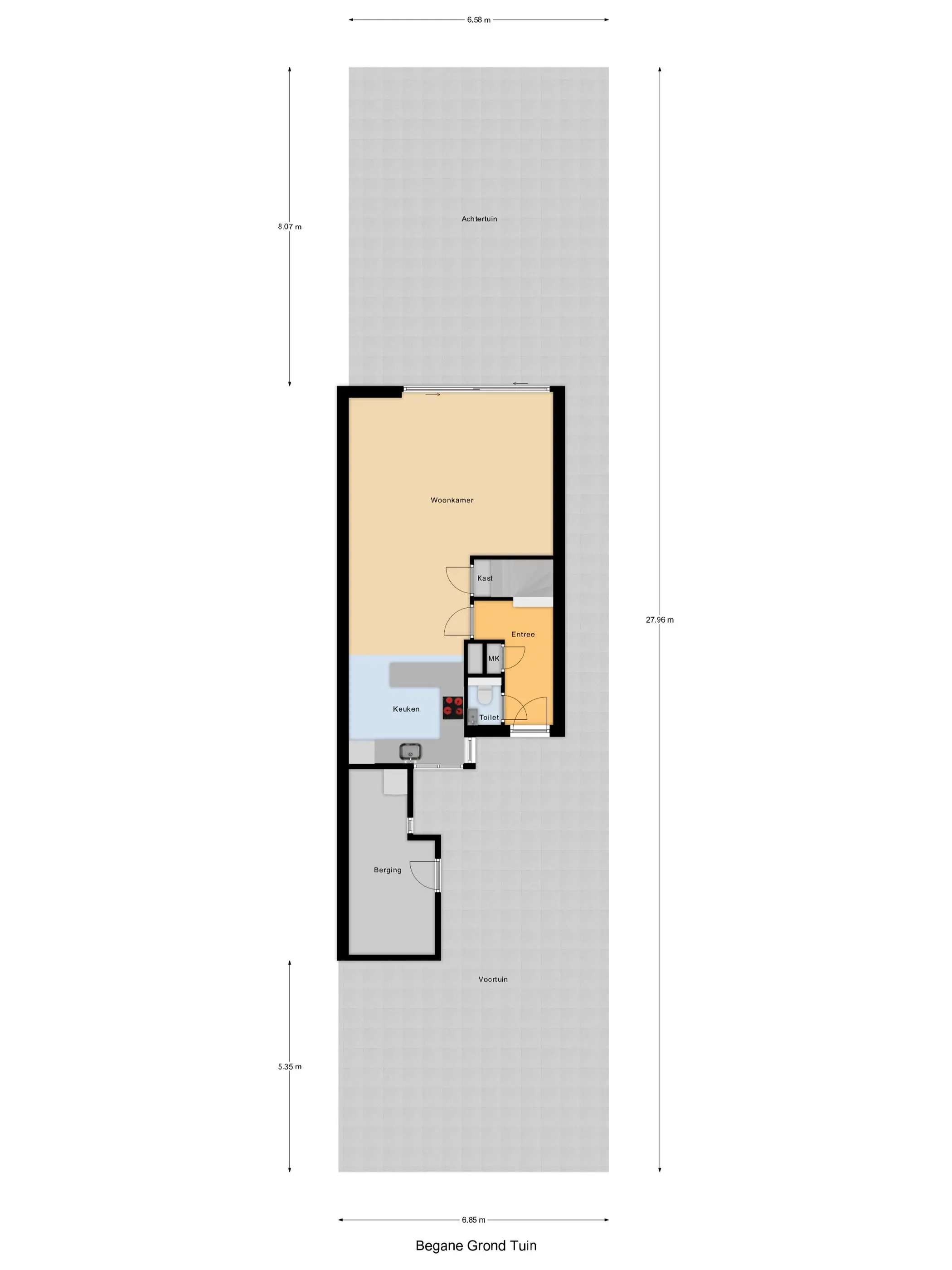 | Tuin | achtertuin met een oppervlakte van 53 m² en is gelegen op het oosten |