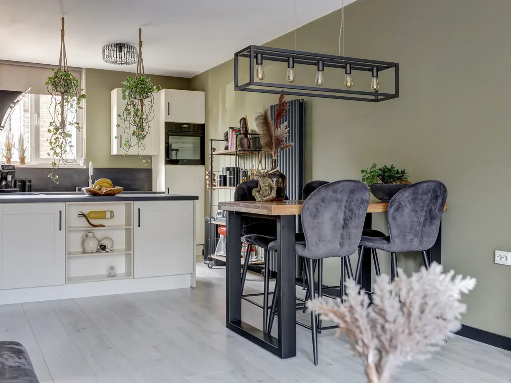De moderne keuken (gemoderniseerd in 2022) vormt het hart van de woning en is van alle gemakken voorzien: een inductiekookplaat, afzuigkap, heteluchtoven met pyrolyse functie, vaatwasser, koelkast én een Quooker zorgen voor optimaal kookcomfort en gebruiksgemak. Een perfecte combinatie van stijl, functionaliteit en gezelligheid.