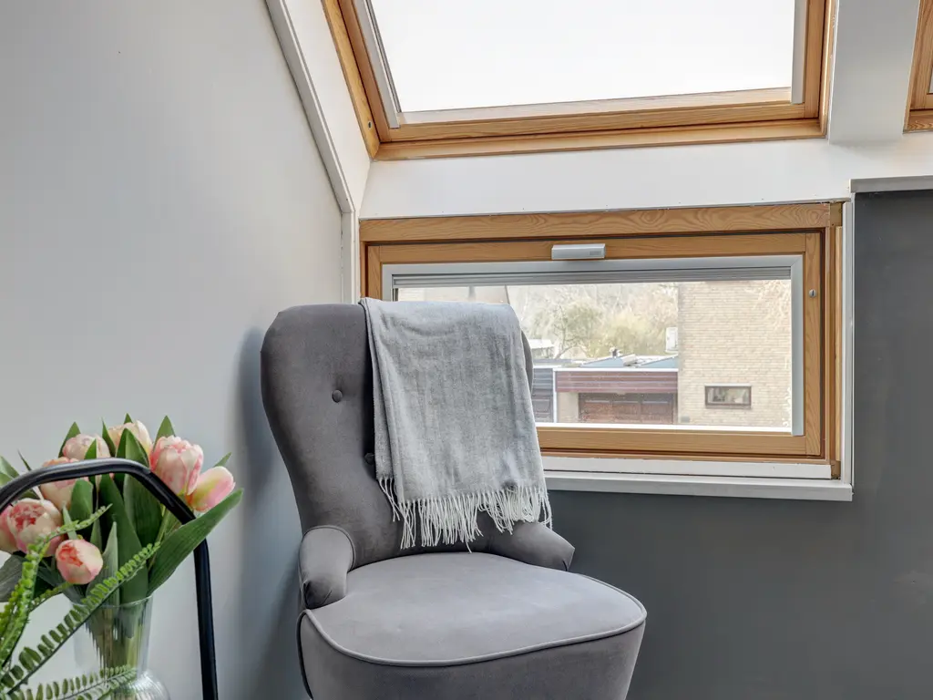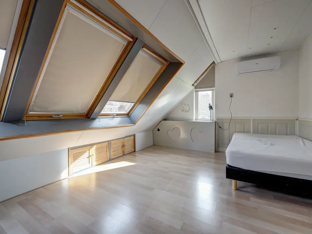 2e verdieping Op de ruime overloop bevinden zich de opstelling van de CV-ketel (2025) en wasmachine en wasdroger. Vanuit hier bereikt u de derde slaapkamer, een veelzijdige ruimte met laminaatvloer, dakraam en airconditioning. Ideaal als extra slaapkamer, thuiskantoor, hobbyruimte of logeerkamer volledig naar eigen wens in te richten.