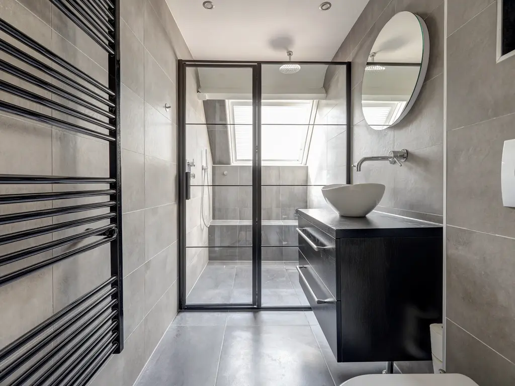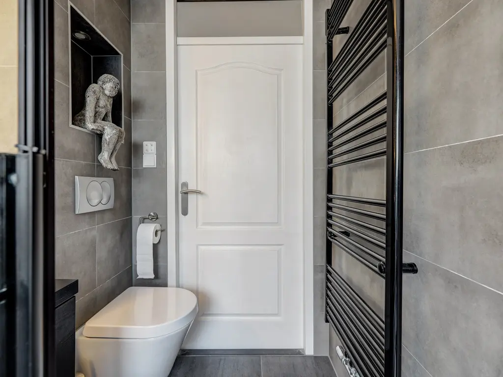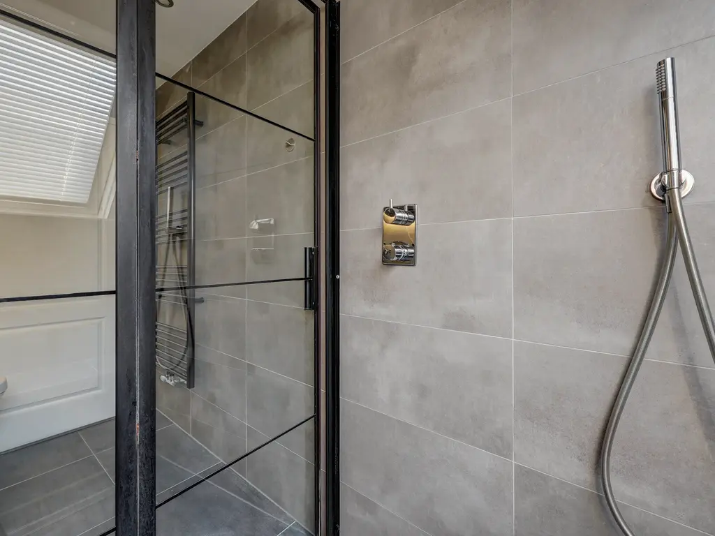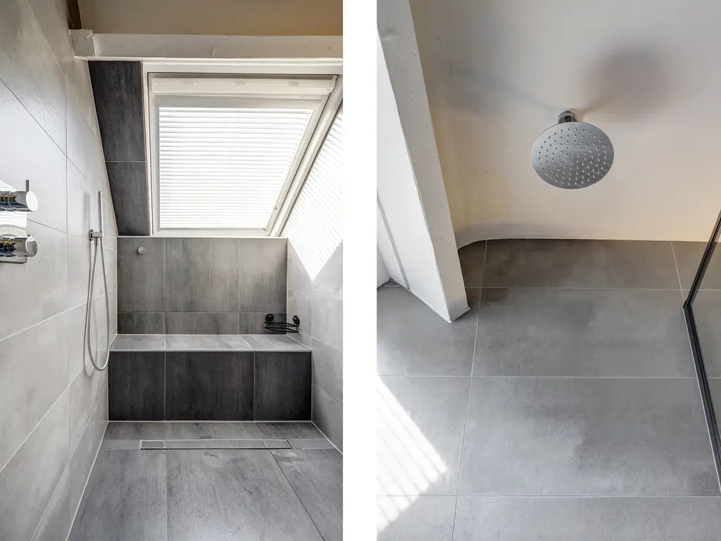 1e verdieping De overloop geeft toegang tot twee royale slaapkamers (voorheen drie), wat zorgt voor extra ruimte en comfort. De slaapkamer aan de voorzijde beschikt over twee dakramen, een praktische inloopkast en airconditioning een heerlijke master bedroom met luxe uitstraling. De slaapkamer aan de achterzijde is voorzien van airco en drie dakramen, wat zorgt voor een prettige lichtinval. De moderne badkamer (2021) is een echte eyecatcher: volledig betegeld tot het plafond en ingericht met een ruime inloopdouche, tweede toilet en een stijlvol wastafelmeubel. Een fijne plek om de dag ontspannen te beginnen én af te sluiten.