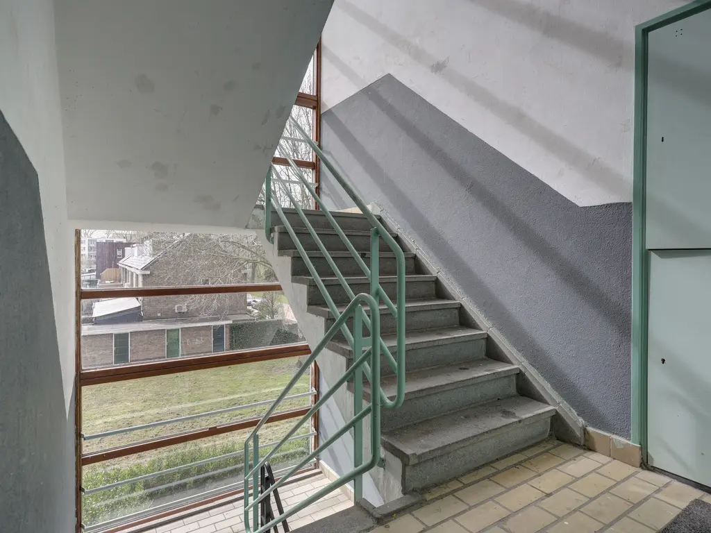 Begane grond: Afgesloten centrale entree met brievenbussen, trappenhuis en toegang tot de bergingen.