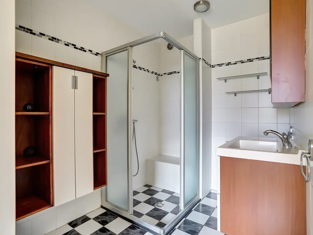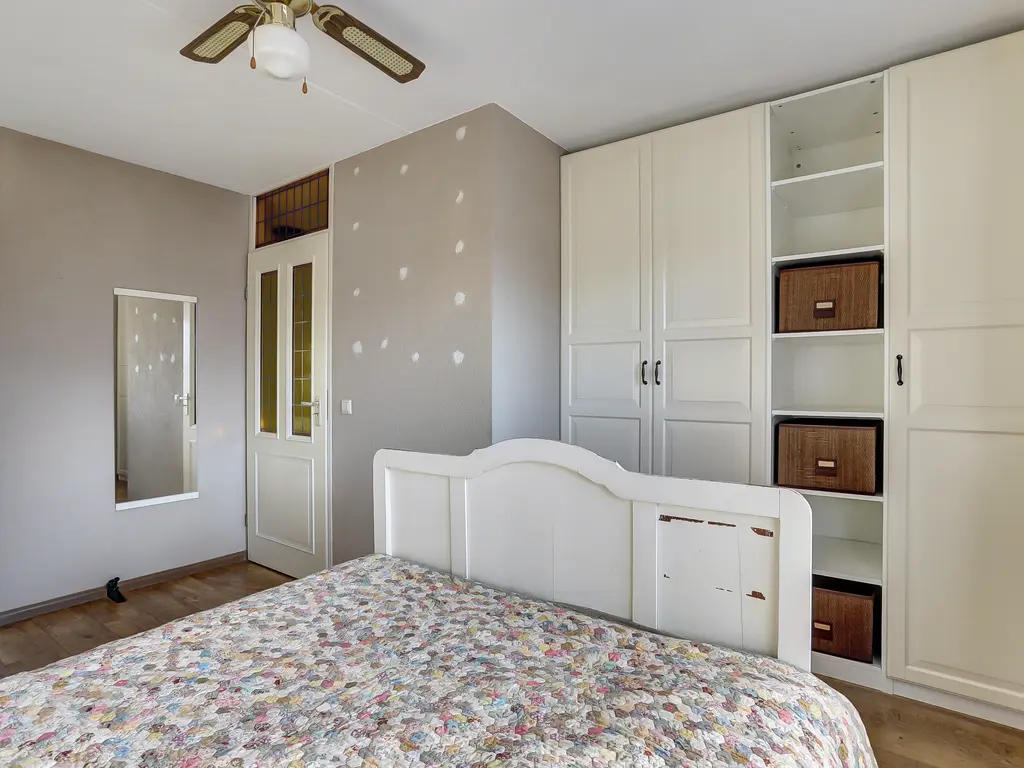 Het appartement beschikt over twee comfortabele slaapkamers. De hoofdslaapkamer biedt toegang tot de volledig betegelde badkamer, voorzien van een douchecabine en een wastafelmeubel.