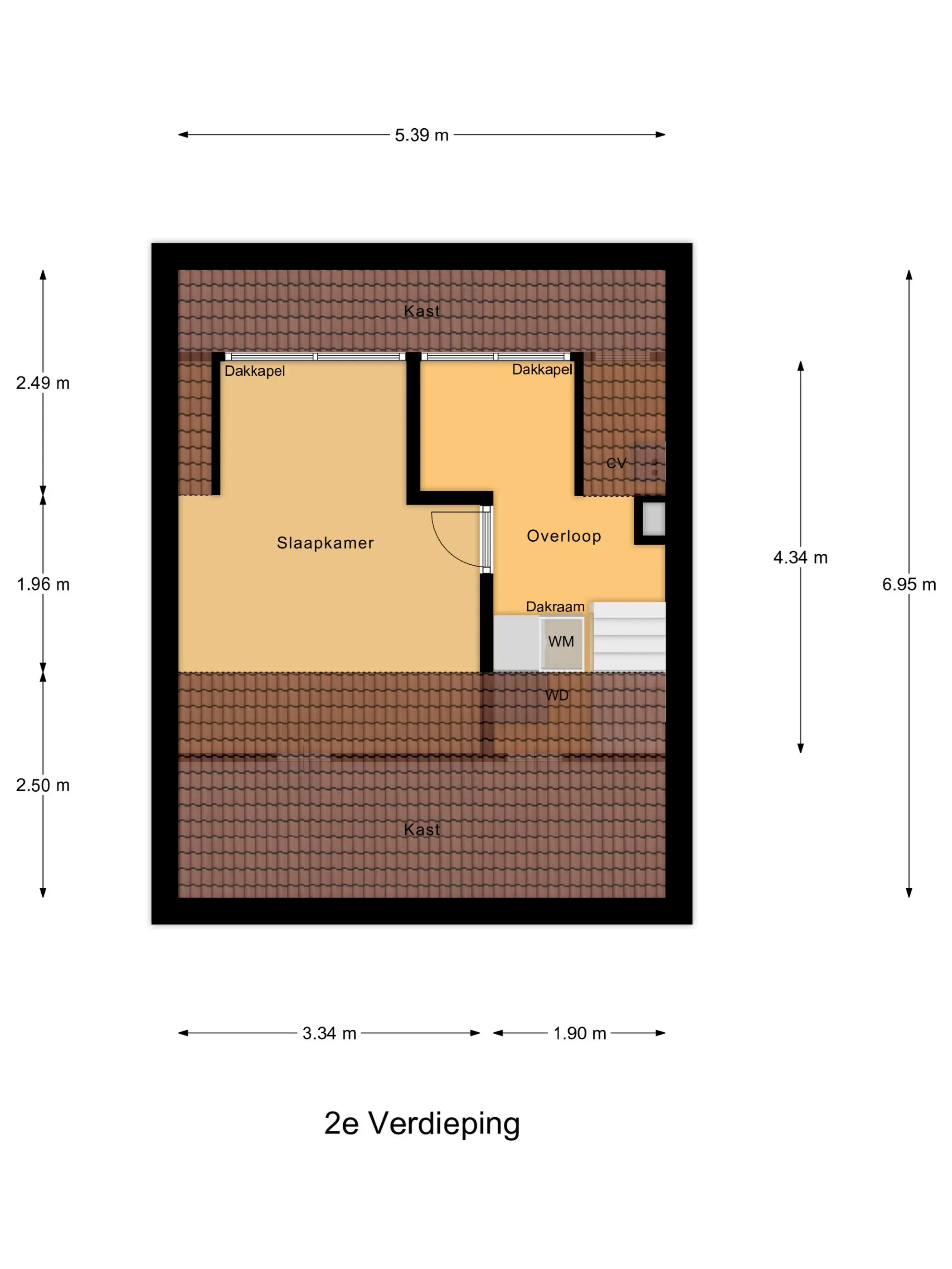 2e Verdieping: Middels een vaste trap op kom je op de voorzolder met opstelling CV Ketel (Vaillant HR 2025) en wasmachine en droger aansluiting en een dakraam. De 4e slaapkamer bevindt zich hier en die beschikt over een grote dakkapel aan de achterzijde van de woning.