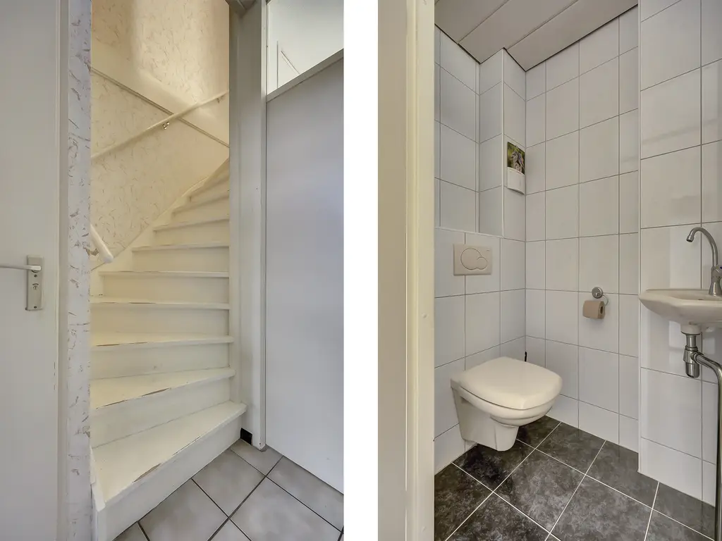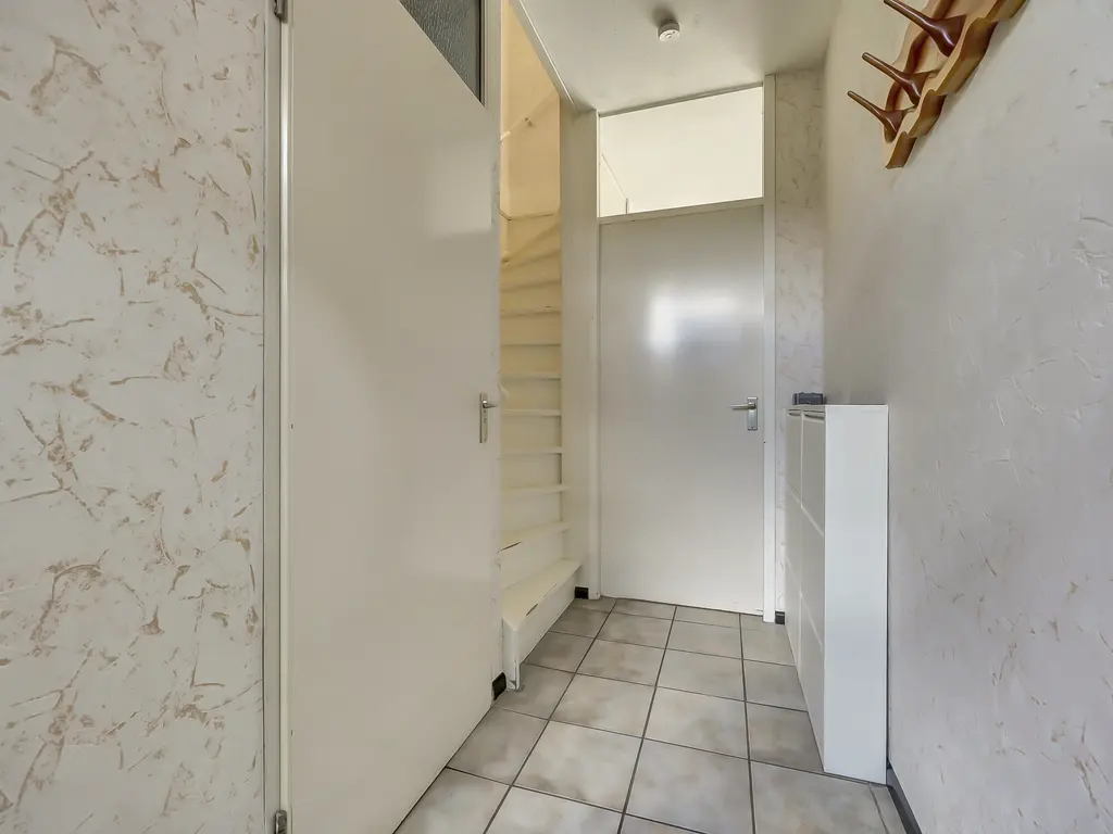 Begane grond: Aan de voorzijde bevindt zich een nette voortuin met stenen berging. Via de hal met garderobe, toilet, opbergkast en trapopgang bereik je de ruime tuingerichte woonkamer. De woonkamer beschikt over een praktische trapkast en een grote kunststof schuifpui naar de zonnige achtertuin aan het water, een heerlijke plek om te ontspannen!
