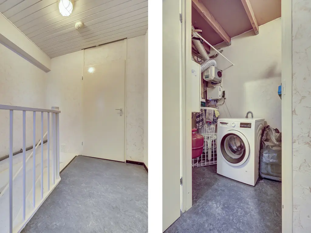 Tweede verdieping: Op deze verdieping vind je een aparte was-/stookruimte met aansluitingen voor wasmachine en droger, en de CV-ketel (Remeha, 2012). Daarnaast is er een grote slaapkamer (voorheen twee kamers), eenvoudig weer op te splitsen in twee aparte kamers.
