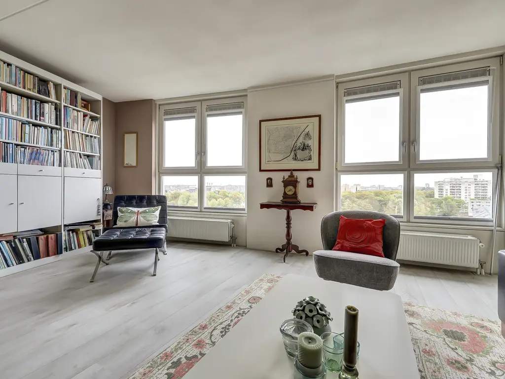 Een heerlijk licht en comfortabel appartement met een uitzicht dat elke dag weer een glimlach oplevert. Hier woon je boven het alledaagse, letterlijk én figuurlijk!